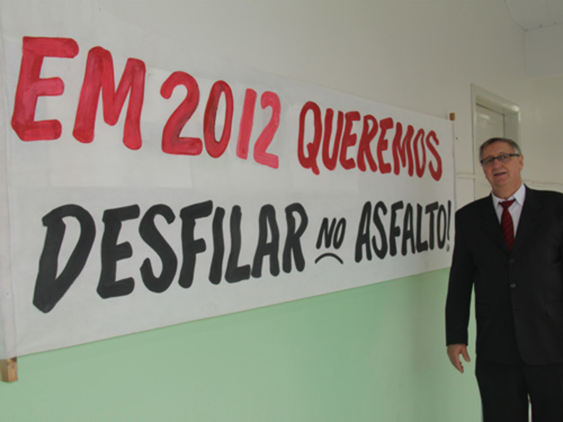A obra está na pauta da comunidade há pelo menos seis anos, segundo conta o diretor do Colégio Estadual Frei Policarpo, Jaime Kirchner, que mora no Belchior há 10 anos. “A promessa de asfaltar a rua existe desde 2005. De lá pra cá, desfilamos no dia 7 de setembro com uma faixa que pede o asfalto, não como protesto, mas como uma reivindicação justa”, afirma Kirchner. A faixa é a mesma há sete desfiles, só muda o ano, como a que foi exibida no desfile do último dia 7: “Em 2012 queremos desfilar no asfalto”.