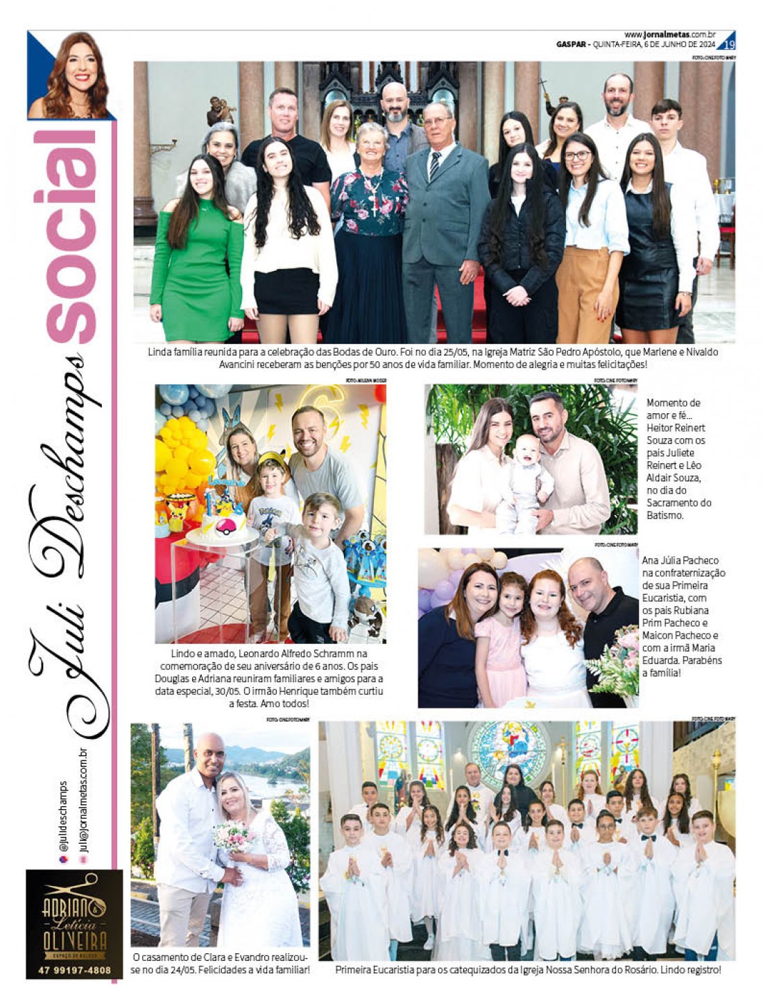 Linda família reunida para a celebração das Bodas de Ouro. Foi no dia 25/05, na Igreja Matriz São Pedro Apóstolo, que Marlene e Nivaldo Avancini receberam as benções por 50 anos de vida familiar. Momento de alegria e muitas felicitações! (Cine: Foto Mary)