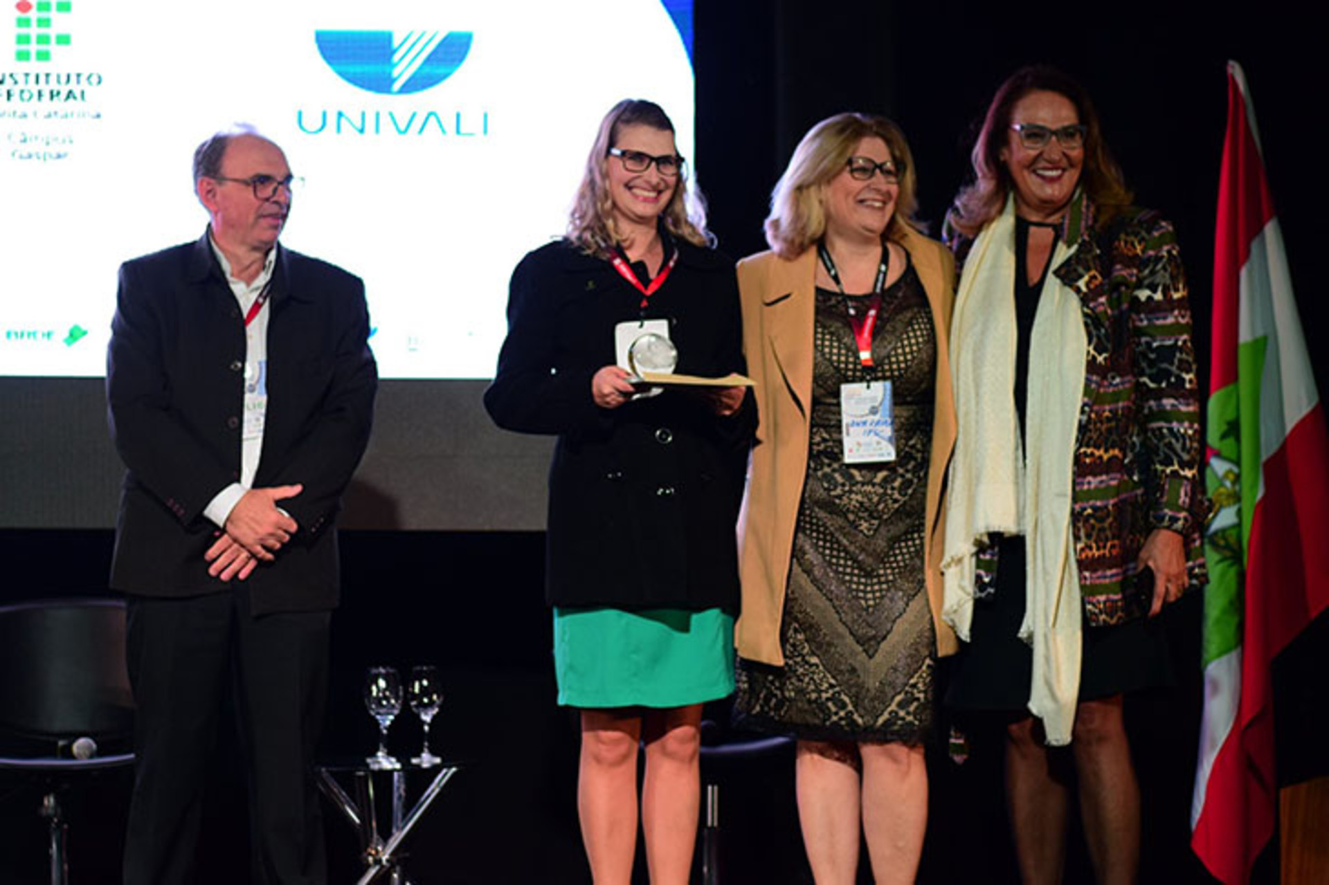 O Instituto Federal de Santa Catarina (IFSC), câmpus Gaspar, foi um dos vencedores do Prêmio Objetivos de Desenvolvimento Sustentável (ODS) de Santa Catarina 2019. O importante reconhecimento veio na categoria Instituição de Ensino, com o projeto "Acolhimento e inclusão social a refugiados e imigrantes". A entrega do prêmio foi realizada na noite de sexta-feira (28), em Florianópolis, durante o Fórum Brasil ODS. O projeto gasparense concorria com outros seis trabalhos. "Para nós, esta conquista é muito importante e gratificante. É o resultado de um trabalho que vem sendo desenvolvido há muitos anos", ressalta a diretora-geral do câmpus Gaspar, Ana Paula da Silveira.