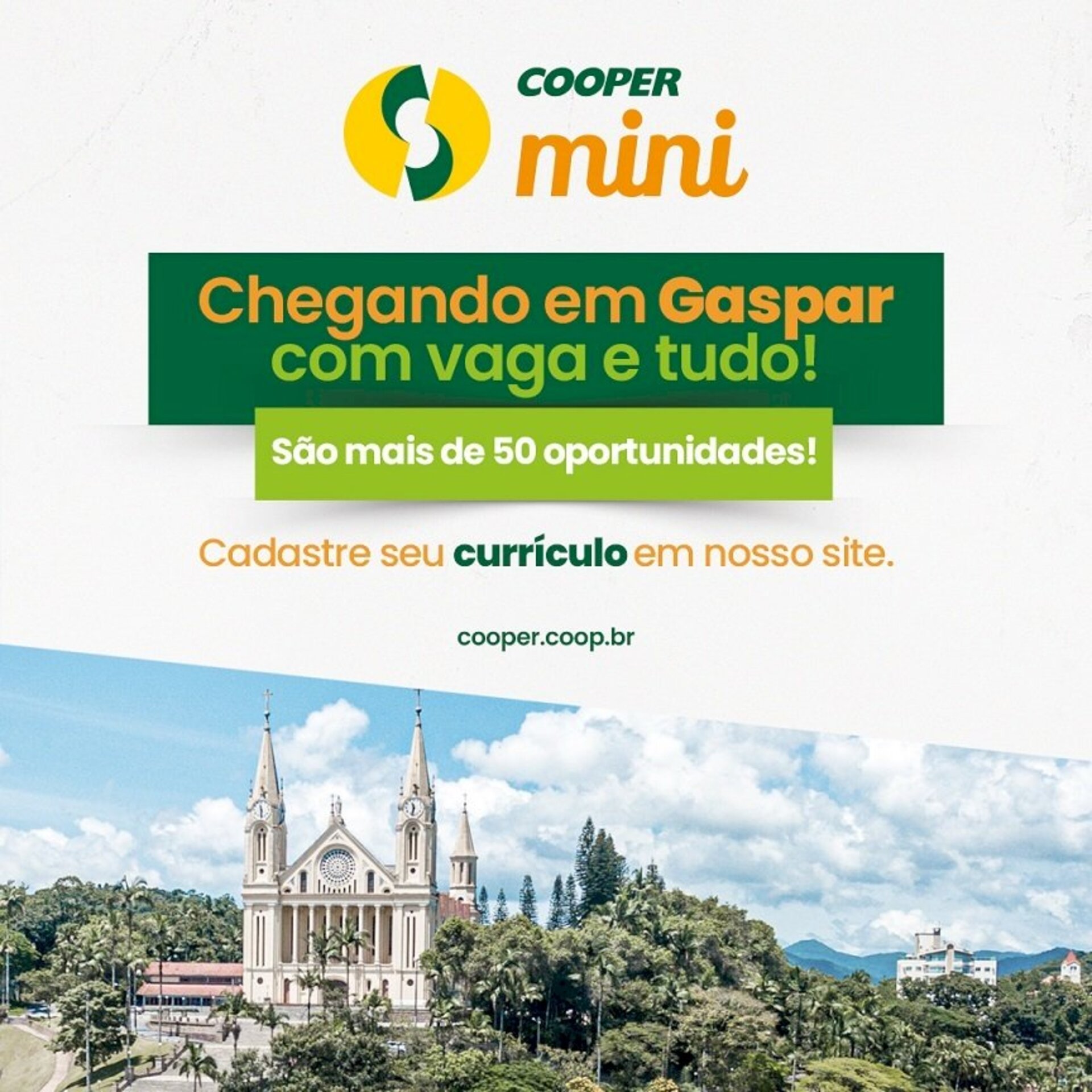 A Rede Cooper vai abrir uma loja no bairro Coloninha, em Gaspar, e está contratando empregados, São mais de 50 vagas de emprego em diversas áreas para compor o time da primeira Cooper Mini, novo formato de loja que vem para ampliar a proximidade com o cooperado e atender as necessidades básicas do dia a dia.