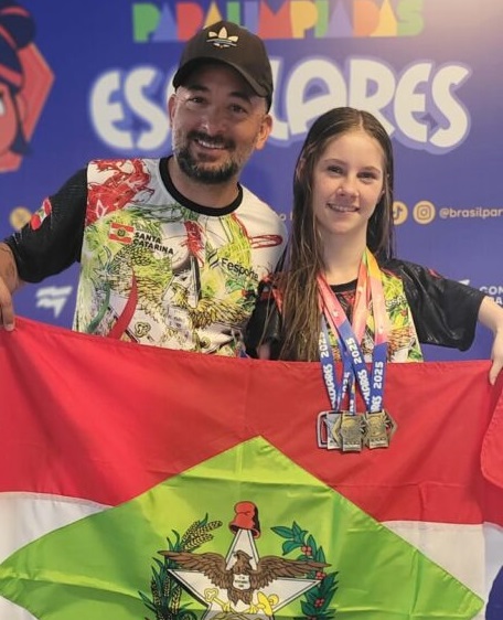 A nadadora gasparense Gabriely Hostins trouxe mais três medalhas na 2ª etapa das Paralímpiadas Escolares Brasileiras, disputada em São Paulo, de 17 a 28 de novembro. Gabriely, um verdadeiro fenômeno na natação, subiu ao pódio nas provas de 50 metros borboleta e 100 metros peito e, de quebra, ainda bateu o recorde nas duas provas. Ela ainda conquistou medalha de prata nos 200 metros medley. A menina prodígio da natação gasparense ajudou Santa Catarina a conquistar o segundo lugar por equipe na natação. Na classificação geral, os catarinenses terminaram em terceiro lugar.