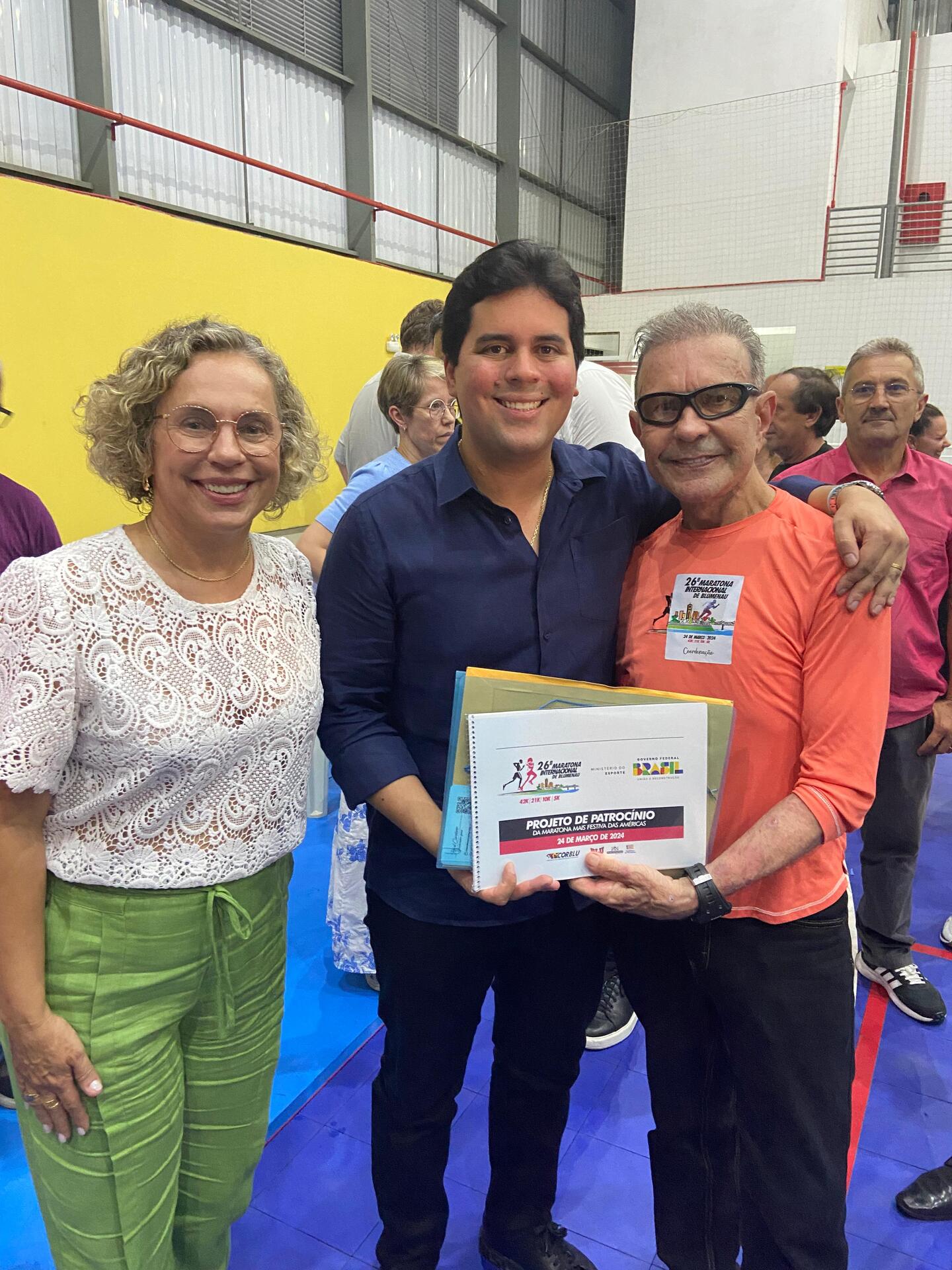 Uma das mais antigas corridas de rua de Santa Catarina, a Maratona Internacional de Blumenau, vai acontecer mais cedo este ano: 24 de março. Portanto, faltando menos de 40 dias para a largada, os preparativos estão acelerados. Um dos criadores da prova e atual coordenador, o atleta Raul Cardozo, que participou de todas as edições, recebeu uma boa notícia no começo da semana passada. Em visita a Blumenau, para inaugurar o Centro de Iniciação Esportiva Escola Básica Paulina Wagner, o ministro dos Esportes, André Fufuca, recebeu das mãos de Cardozo o plano de mídia e o projeto com todas as informações da maratona. O ministro se mostrou bastante interessado em saber mais da corrida e se comprometeu em apoiar o evento deste ano. O encontro entre Cardozo e Fufuca teve intermediação e apoio da deputada federal Ana Paula Lima (PT), líder do governo Lula na Câmara dos Deputados, que também é madrinha do evento, ao lado do presidente do Sebrae nacional e seu marido, Décio Lima. A deputada vem reivindicando apoio do Ministério do Esporte à Maratona Internacional de Blumenau.