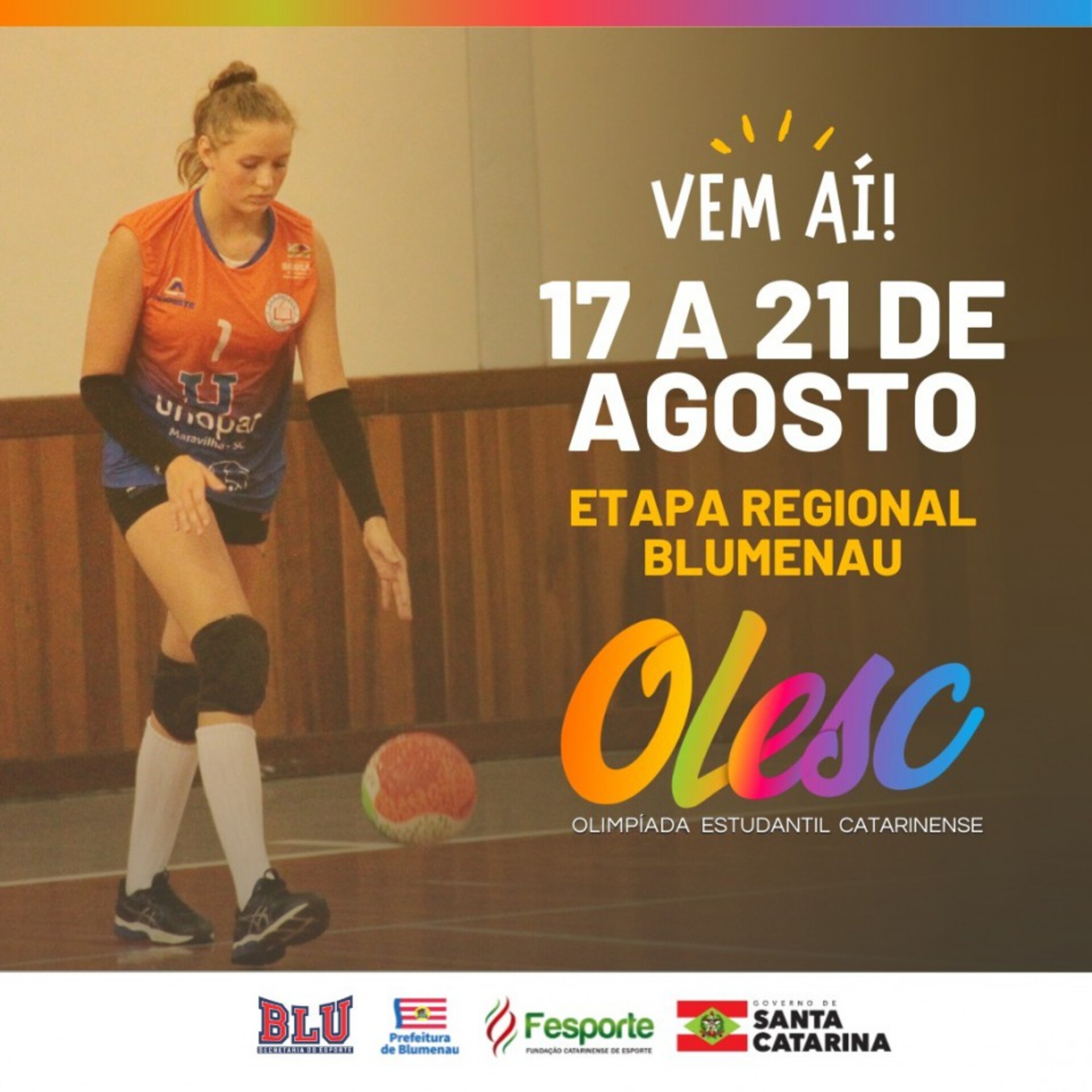 Blumenau sediará entre os dias 17 e 21 de agosto a etapa regional leste-norte da Olimpíada Estudantil de Santa Catarina (Olesc). O evento irá reunir mais de 1.500 atletas e dirigentes esportivos, representando 25 cidades catarinenses nas modalidades do basquete, futsal, handebol e voleibol, categorias femininas e masculinas.