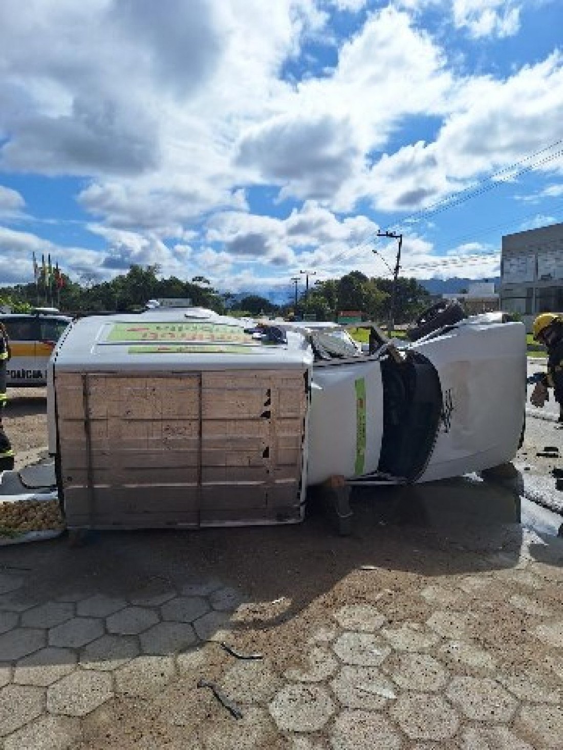Fiat Fiorino tombou após a batida (Fotos: PMRv - POSTO 2)