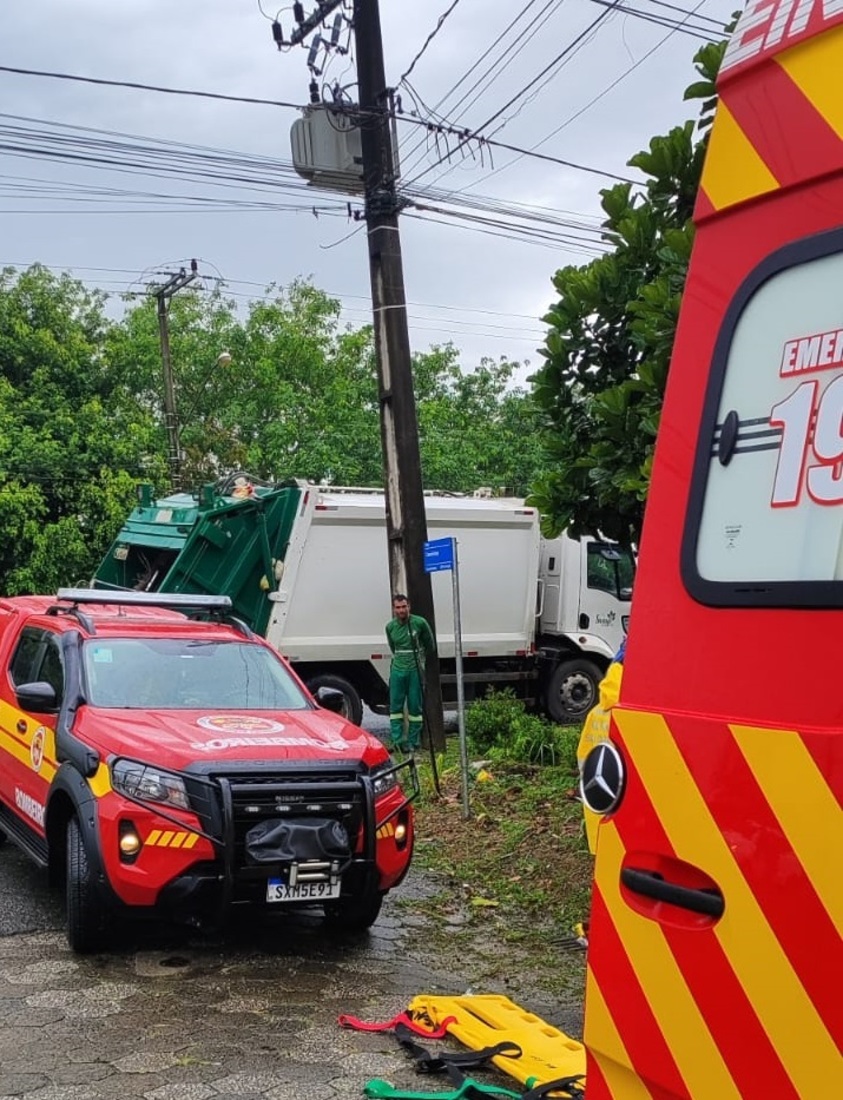 O Corpo de Bombeiros Militar de Gaspar atendeu, por volta das 14 deste sábado, dia 18, a um acidente de trânsito na Rua Canelinha, no bairro Santa Terezinha. De acordo com boletim da corporação, um caminhão de coleta de lixo colidiu contra um poste, ferindo o gari que trabalhava no local.