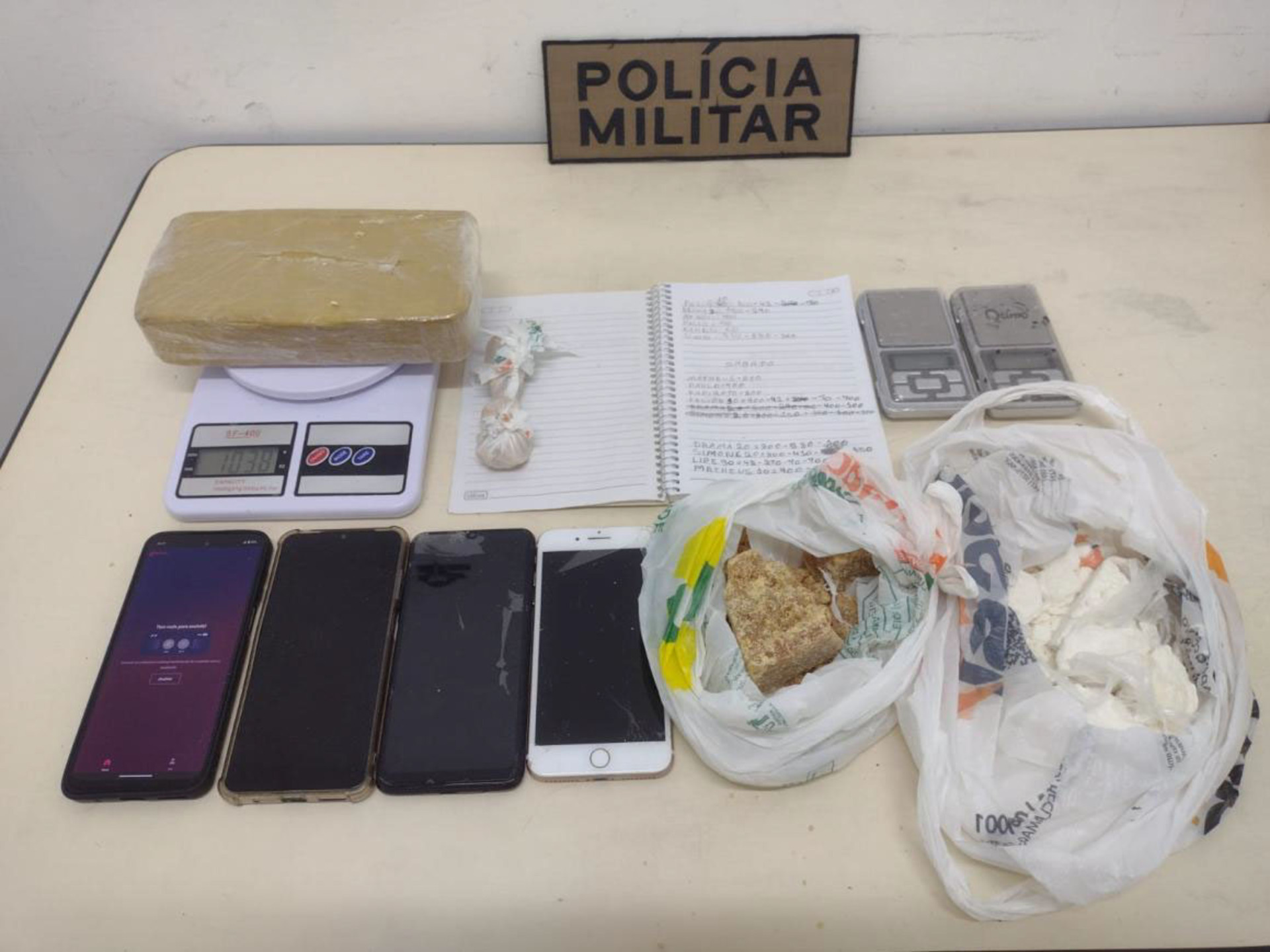 Drogas e celulares foram apreendidos pela PM // (Fotos: FOTO PM BLUMENAU)