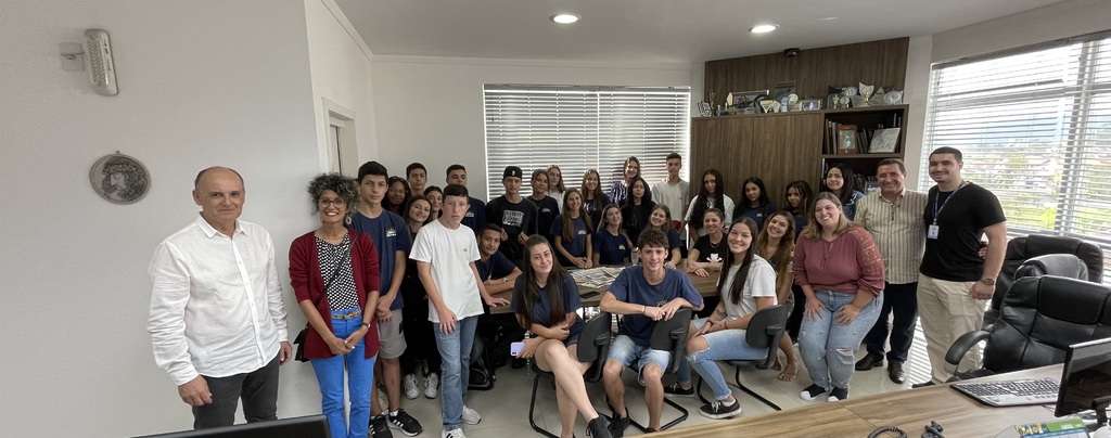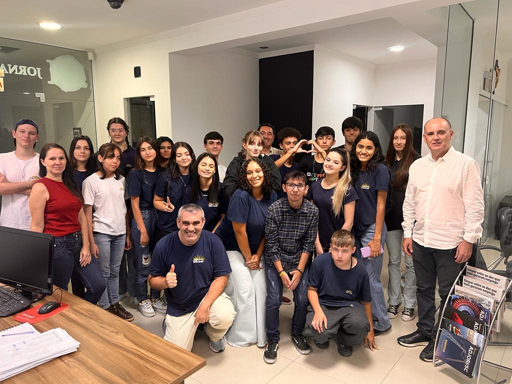 Curiosos e muito interessados em conhecer a rotina de uma redação de jornal. Assim, o Jornal abriu suas portas para receber duas turmas de alunos do 2º ano do Ensino Médio da Escola de Educação Professor Honório Miranda, a mais antiga de Gaspar, com quase 89 anos. A primeira turma, na manhã de quinta-feira, dia 4, veio acompanhada das professores Andreia Ferreti e Dulcineia de Paula. Dentro da nova proposta de Ensino Médio, ela é responsável pelo conteúdo da chamada Trilha Tecnologia e Comunicação, que abrange quatro disciplinas da área de Humanas: História, Geografia, Filosofia e Sociologia. Por isso, explicou a professora, o interesse em mostrar aos estudantes como é transmitida hoje a notícia, já que vivemos uma verdadeira transformação na comunicação, a partir da massificação da internet.