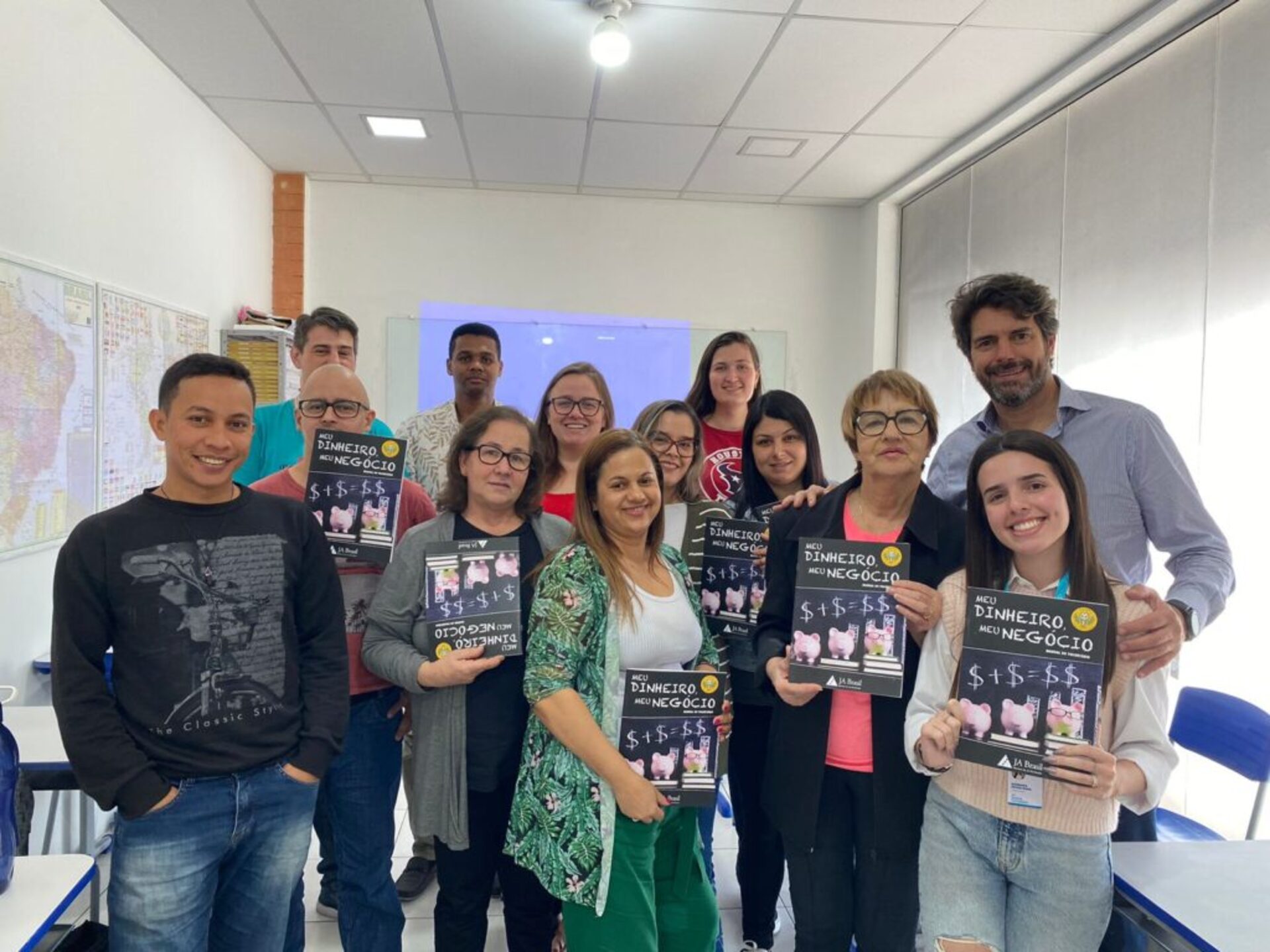 “Meu dinheiro, meu negócio” é o tema do mês da formação oferecida pela Educação de Jovens de Adultos (EJA) em parceria com a Junior Achievemente (JA), uma organização social incentivadora de jovens do Brasil e outros países. O intuito é trabalhar no desenvolvimento de estudantes para o mercado de trabalho e o empreendedorismo.