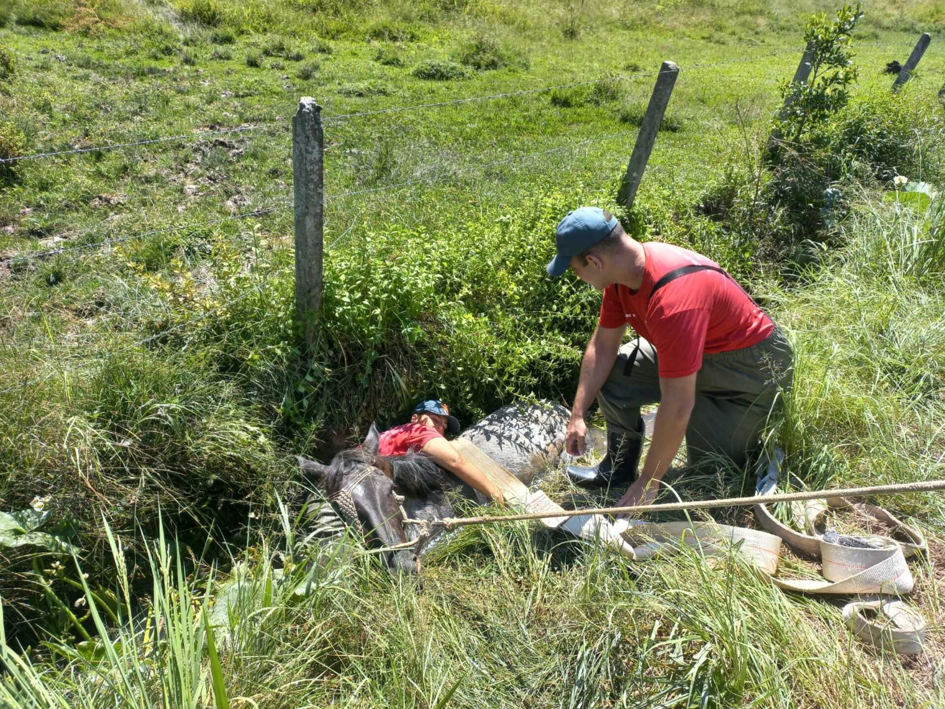 Quando a guarnição chegou ao local viu que se tratava de uma égua saudável, com aproximadamente cinco anos, conforme o dono do animal. A guarnição foi informada de que o animal estava caída no atoleiro a cerca de duas horas. Durante este tempo, o proprietário tentou retirar o animal por meios próprios, mas não conseguiu e solicitou ajuda ao Corpo de Bombeiros Militar de Gaspar.