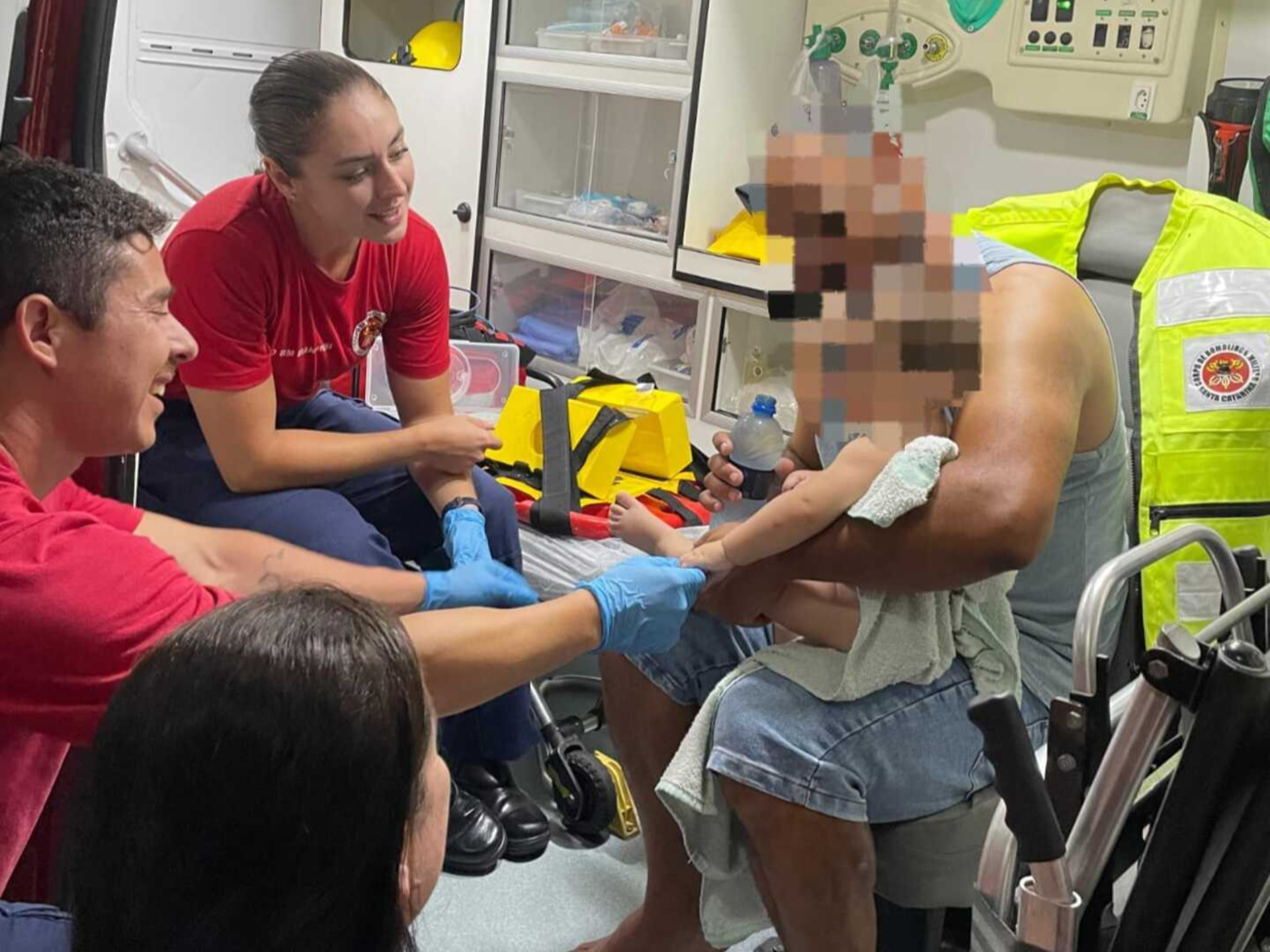 Por volta de 20h15 deste domingo, dia 14, a guarnição do Corpo de Bombeiros Militar de Gaspar foi acionada, no quartel, por um casal que trazia a filha, de apenas 8 meses, que estava engasgada com água.