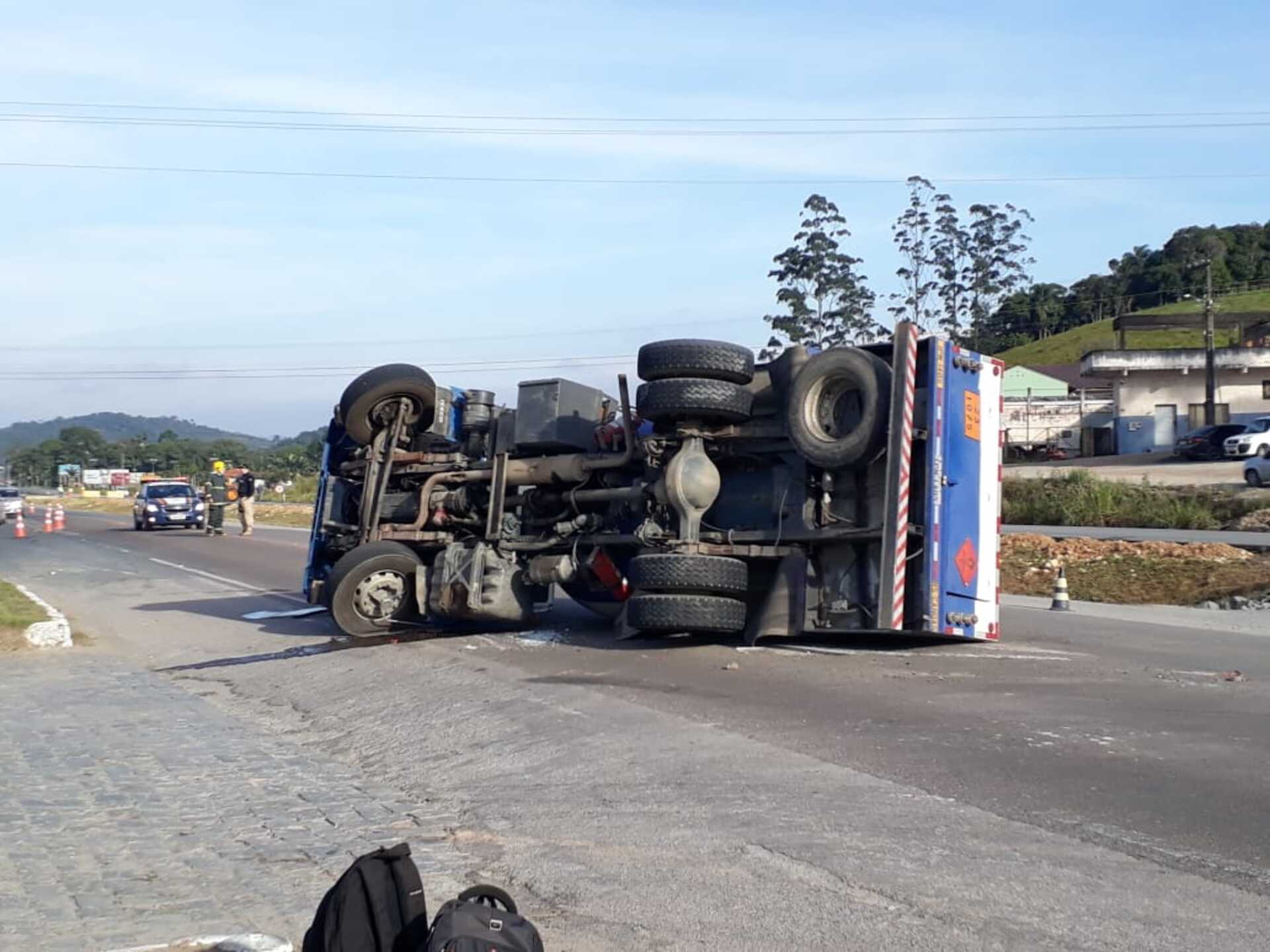 Motorista perdeu o controle e o caminhão tombou na pista / FOTO DIVULGAÇÃO