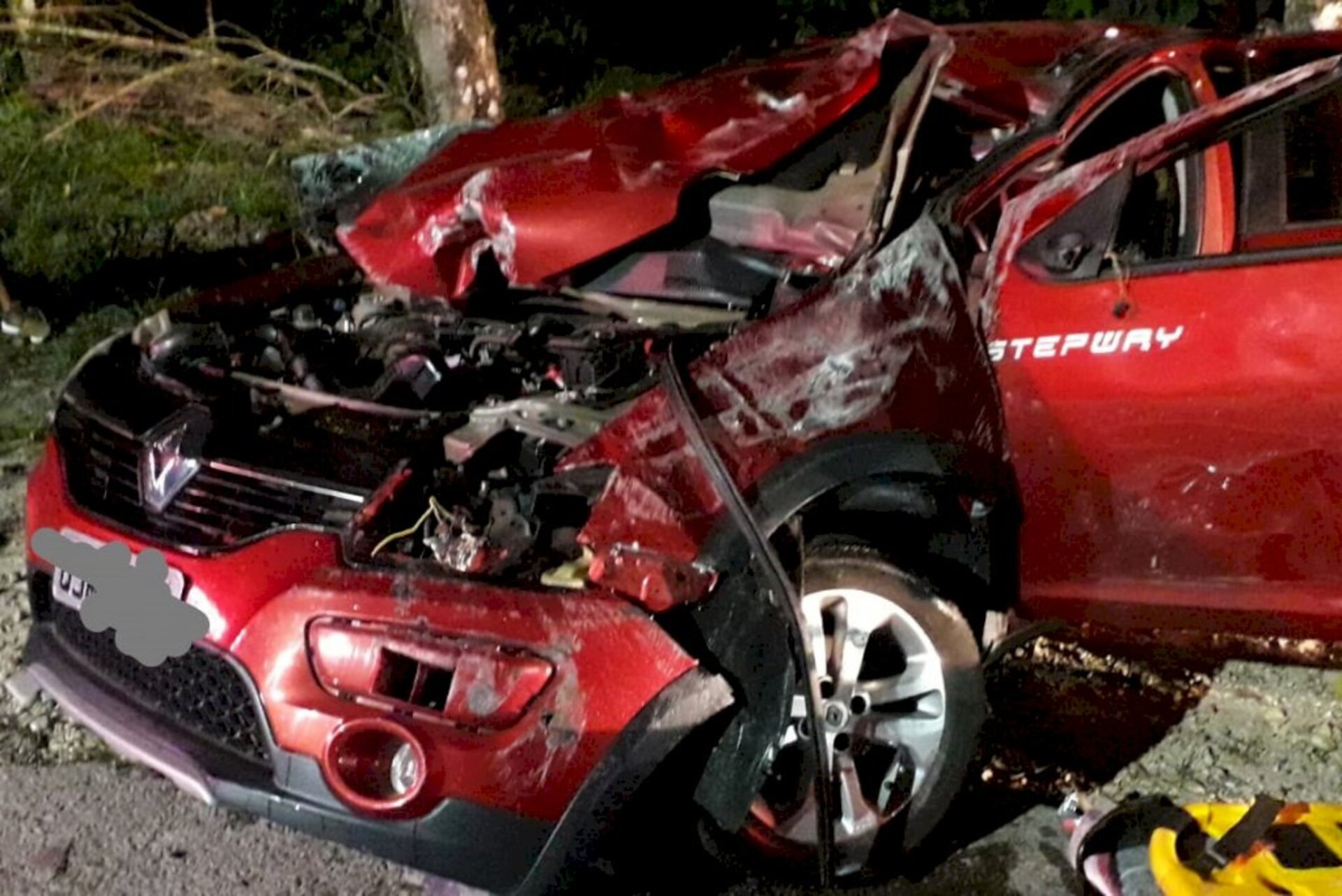 O solicitante informou que se tratava de um capotamento com vítima presa às ferragens e que o automóvel, um Sandero Stepway com placas de Brusque, estaria de "ponta cabeça".