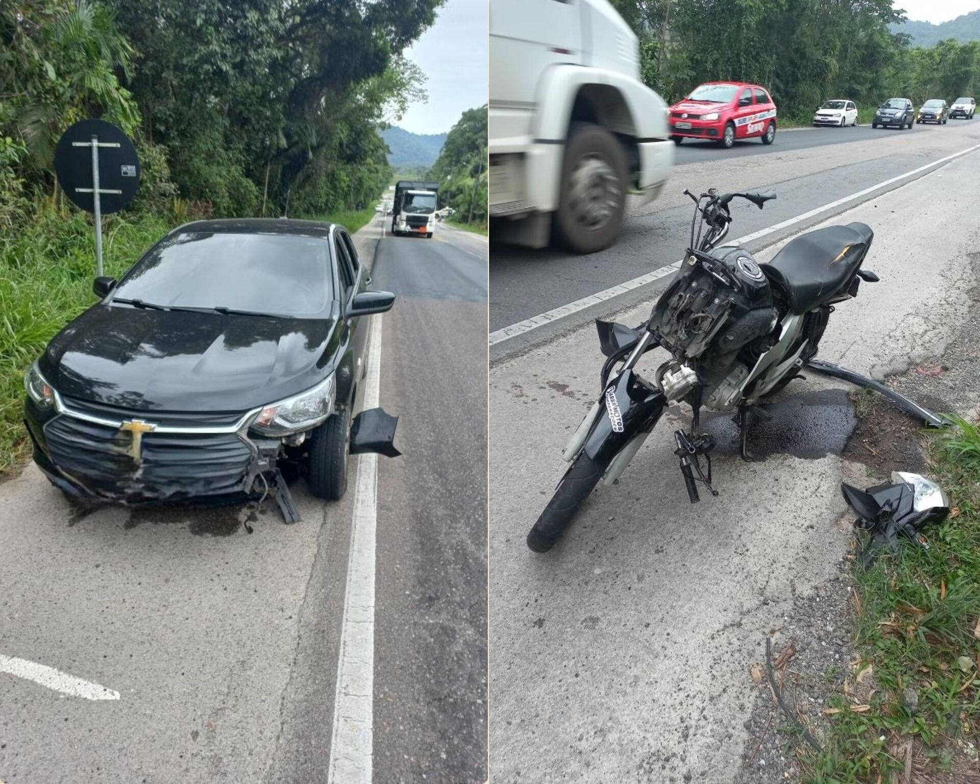 Um acidente de trânsito entre um carro de uma moto foi registrado na manhã desta segunda-feira, dia 6, por volta de 6h50, na Rodovia Ivo Silveira (SC-108), na altura do km 108, em Gaspar.