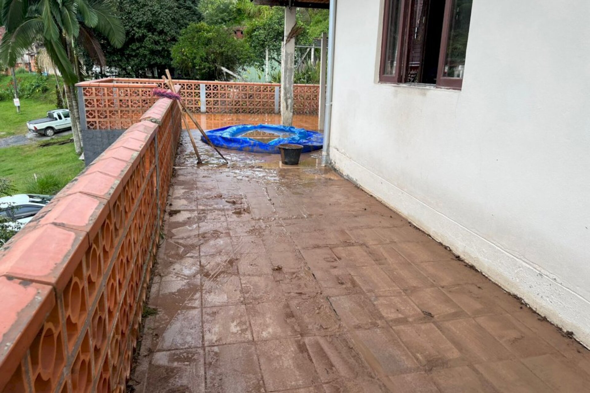 Uma família do Bairro Bela Vista foi orientada a não permanecer na casa por conta do risco de deslizamento. A família é considerada desalojada e está em casa de familiares.
