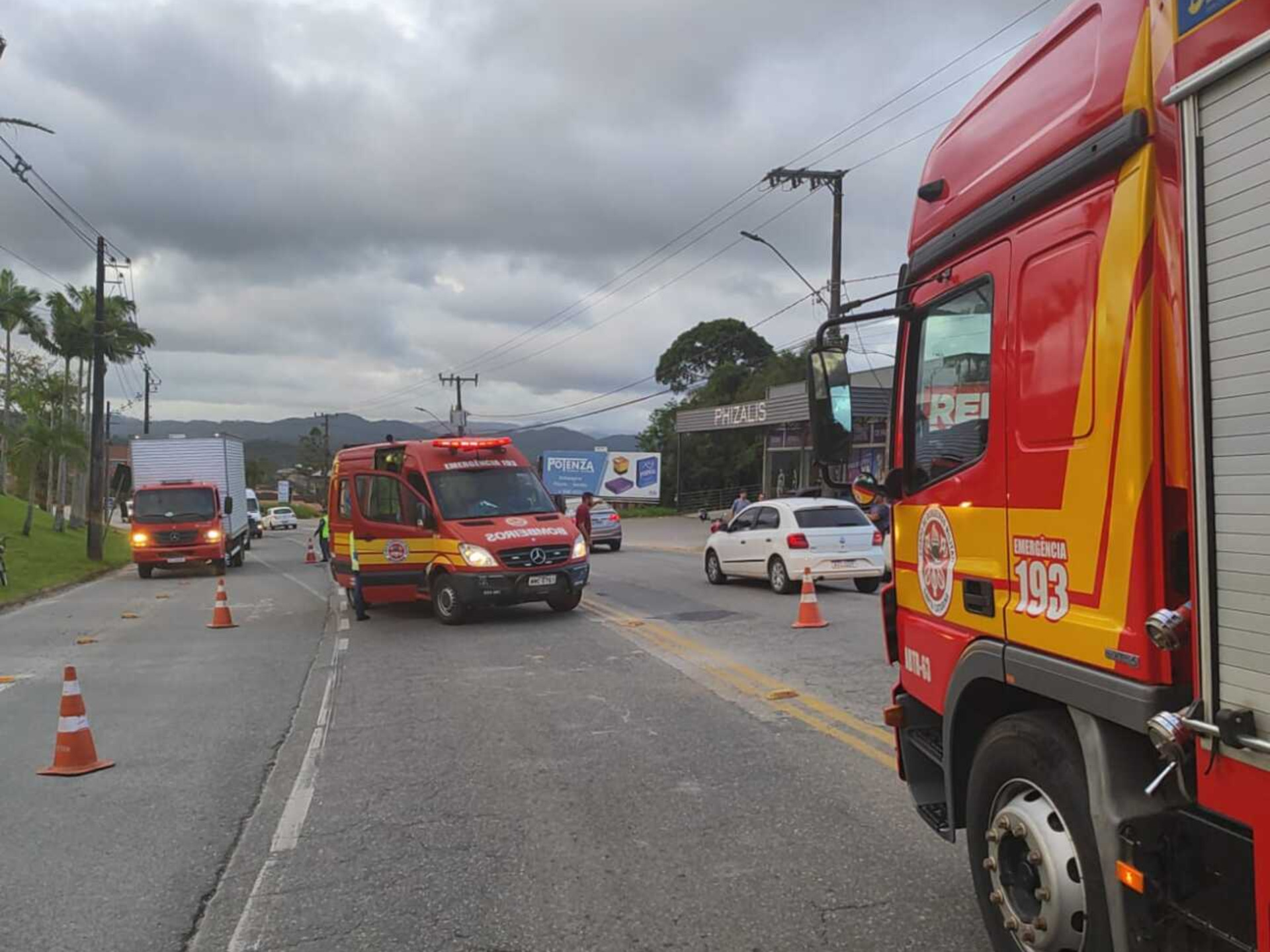 Por volta de 18h20 desta segunda-feira, dia 18, o Corpo de Bombeiros Militar de Gaspar atendeu uma ocorrência de colisão entre motocicleta e carro. O acidente foi registrado na Avenida Frei Godofredo, no bairro Santa Terezinha.
