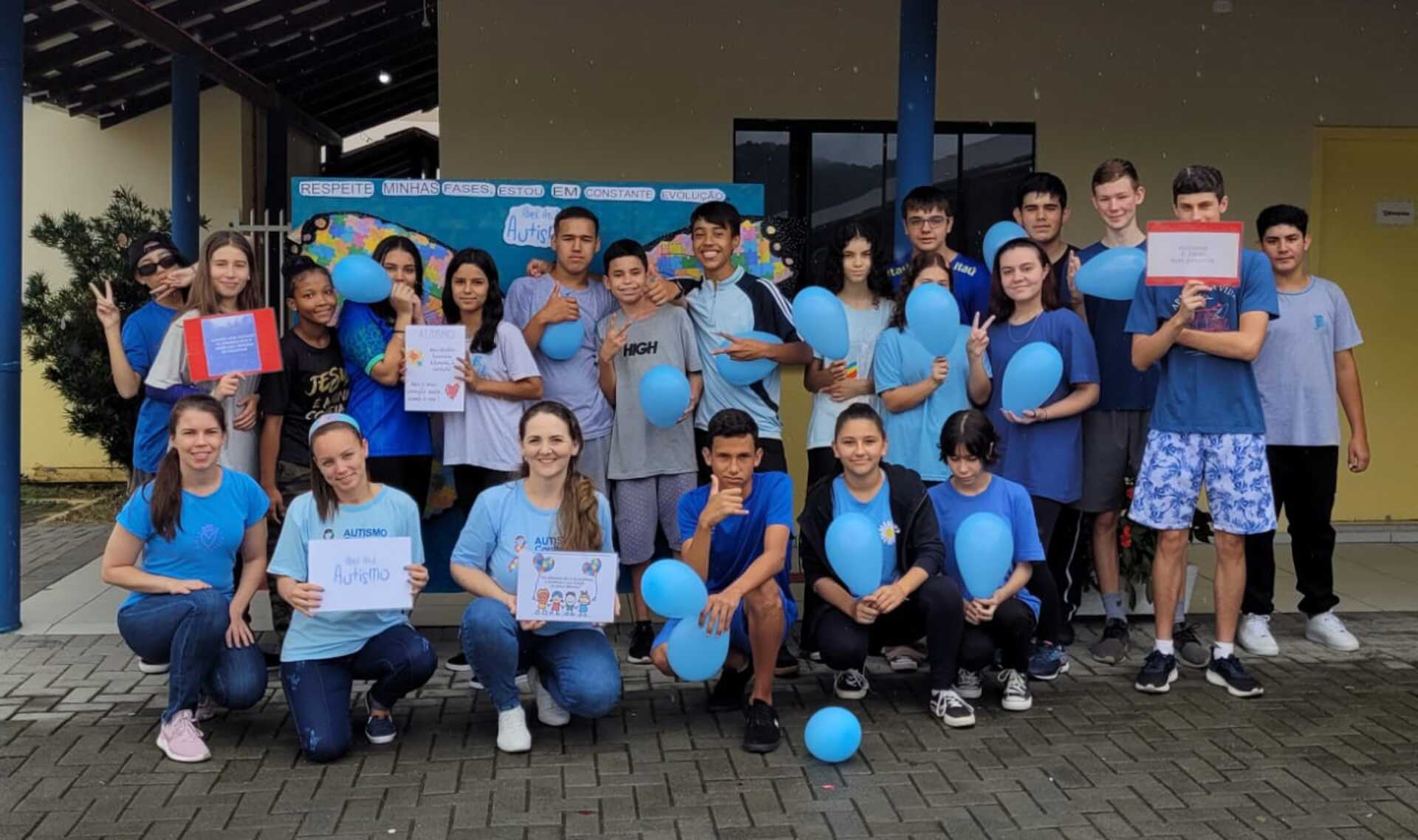 Na última sexta-feira, dia 14, os alunos do 9º ano da Escola Municipal Ferandino Dagnoni, no bairro Gasparinho, realizaram mais uma edição do trote do bem. O tema deste mês foi a conscientização sobre o autismo e o “Abril Azul”. Todos os alunos aderiram aos tons de azul e debateram sobre o Transtorno do Espectro Autista (TEA), para reduzir a discriminação e o preconceito que cercam as pessoas com autismo.