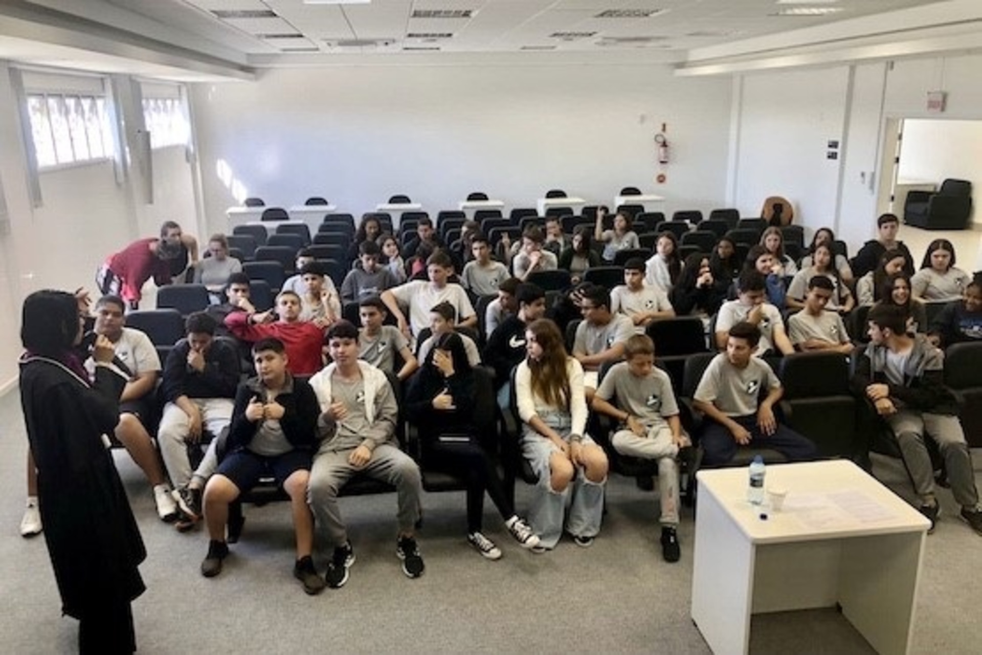 A juíza Griselda Rezende de Matos Muniz Capellaro, titular da Vara Criminal da comarca de Gaspar, recebeu no último dia 7 duas turmas de estudantes do 9º ano do Ensino Fundamental da Escola Estadual de Educação Básica Zenaide Schmitt Costa. A visita foi um pedido da professora Ivone Trevisan Caye, e teve como objetivo a exposição de conhecimentos da magistrada sobre o procedimento do Tribunal do Júri e a relevância dos serviços prestados pelos cidadãos sorteados para compor o Conselho de Sentença. A ideia da professora é envolver os alunos em um júri simulado na escola, para desenvolver habilidades argumentativas. De acordo com a juíza, “os alunos foram participativos e se mostraram interessados no funcionamento tanto do procedimento do Tribunal do Júri quanto do sistema de justiça em geral”. Na oportunidade também foram abordados assuntos relevantes como uso de drogas, estupro de vulnerável e assédio, além de ser enaltecida, pela magistrada, a importância do ensino na fase em que os adolescentes se encontram.A visita, dividida em dois turnos - matutino e vespertino -, teve a presença de 80 alunos entre 13 e 15 anos de idade, com a supervisão e acompanhamento dos professores Guilherme Schmitz, Ivone Trevisan Caye, Sandra Santos Lima Dória e Carla Dinara de Melo. A professora Ivone, responsável pela disciplina, agradeceu as palestras da magistrada e a atenção dela para com as turmas e os docentes presentes.
