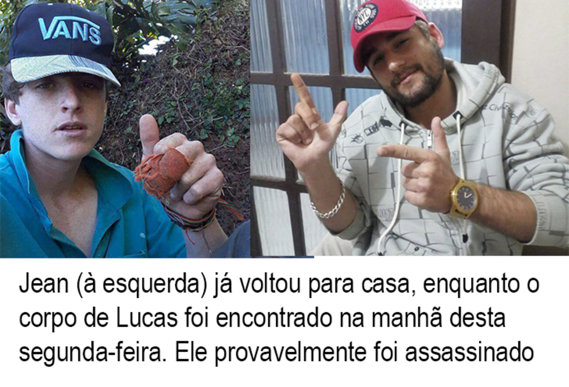 Dois gasparenses estavam desaparecidos desde a semana passada. Lucas Zuchi, de 21 anos, e Jean Cleiton Nicoletti, de 16 anos. Jean, morador do bairro Gasparinho, voltou para casa na tarde de sábado (25). O seu pai, Idalício Nicoletti, o popular italiano, esteve na rádio Sentinela do Vale na manhã desta segunda-feira (27), para comunicar o fato. Na microfone da rádio, o pai contou a versão que o filho deu para o fato de ter ficado desaparecido por cinco dias. Segundo Idalício, Jean estaria em um ponto de ônibus na tarde terça-feira (21), tentando pegar o sinal de internet, quando uma pessoa em um carro se aproximou e o convidou para dar uma volta na praia. O jovem disse que assim que entrou no carro seus olhos foram vendados, porém, os supostos raptores o teriam abandonado na cidade litorânea de Piçarras ao avistarem um helicóptero sobrevoando a região. Jean entrou então em contato com a família e seu irmão foi buscá-lo na tarde de sábado. Ainda na madrugada de domingo, seu Idalício contou que a casa do seu vizinho foi alvo de disparos de arma de fogo, porém, ele não sabe se os criminosos erraram o alvo na tentativa de atingir a sua casa. Já o corpo localizado na manhã desta segunda-feira (27), no bairro Gasparinho, é de do outro jovem desaparecido: Lucas Zuchi. A polícia civil somente confirmou que o corpo era mesmo de Lucas depois que a família reconheceu o boné e a vestimenta usados pelo jovem no dia do seu sumiço. O corpo foi levado para o IML de Blumenau, no final da manhã desta segunda-feira.