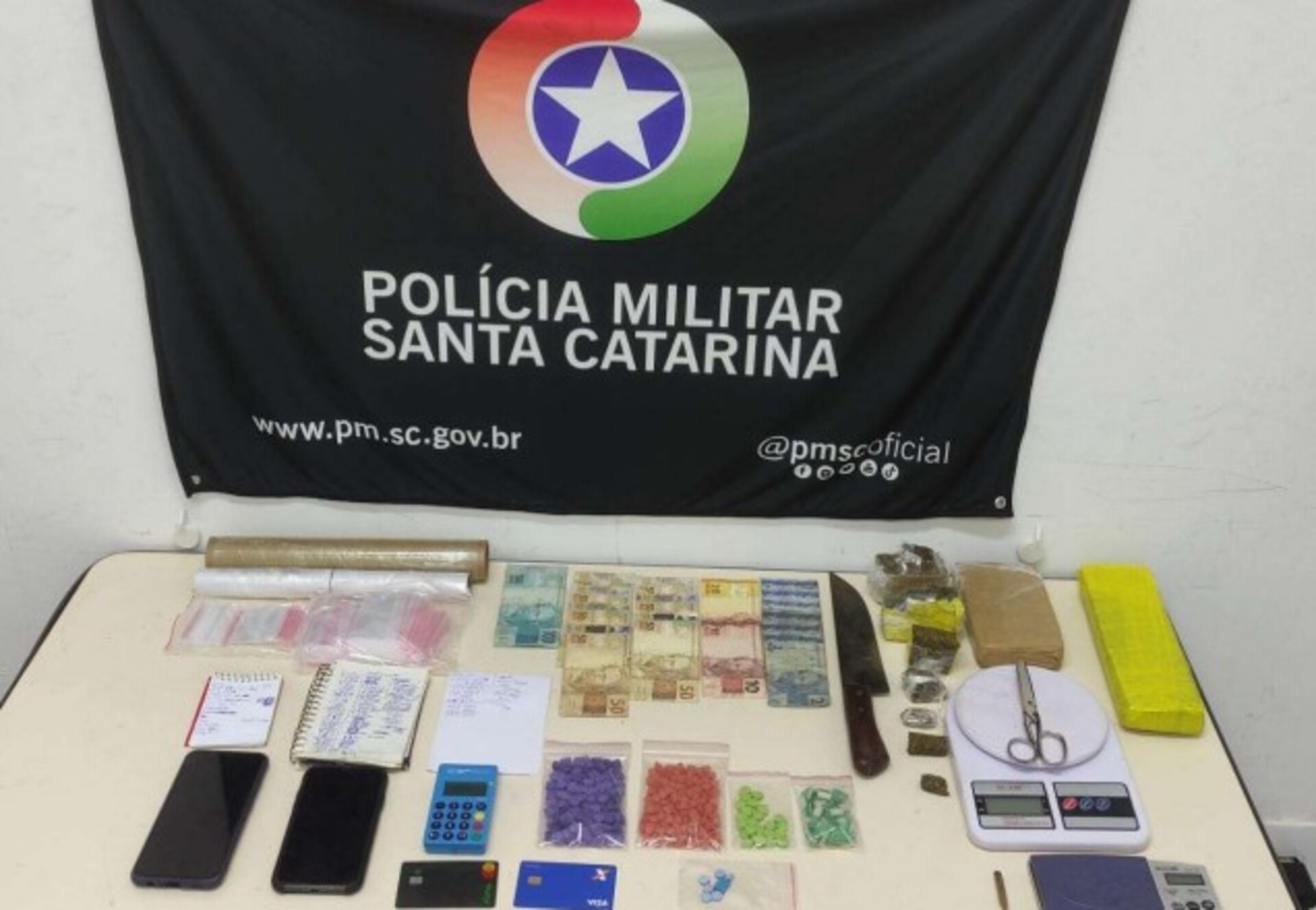 A guarnição fez a abordagem do suspeito e encontrou no local vários objetos utilizados para fracionar e embalar as substâncias ilícitas, como duas balanças de precisão; três rolos de plástico filme; aproximadamente cem embalagens plásticas com zíper; tesoura; máquina de cartão; um facão e três cadernos com a contabilidade das vendas. Além disso, a PM encontrou um total de 1,340 kg de maconha, 146 comprimidos de ecstasy e R$ 492 em dinheiro.