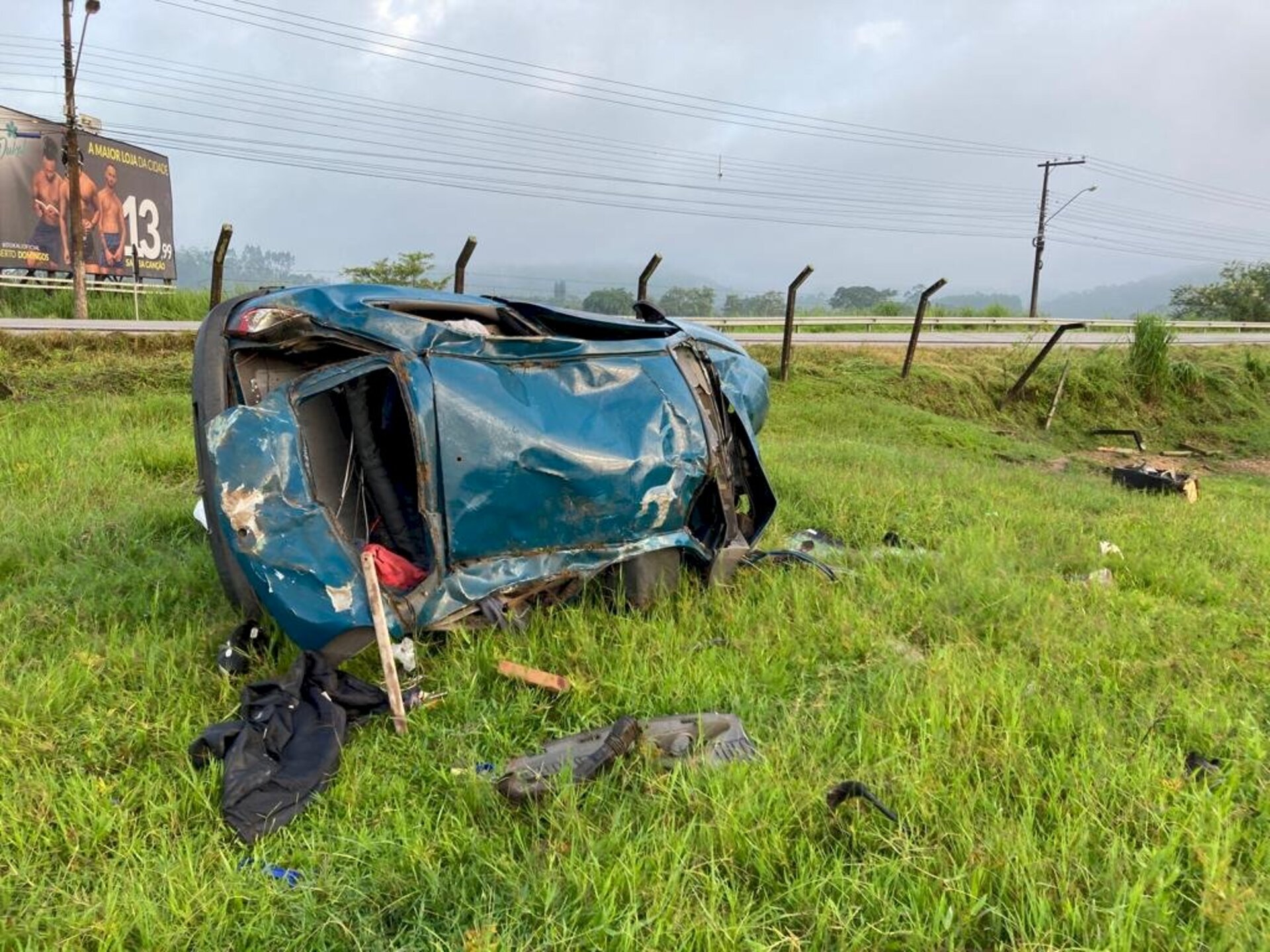 Ele estava em um Celta, placas de Gaspar, que capotou depois de uma saída de pista na madrugada de sábado (5)