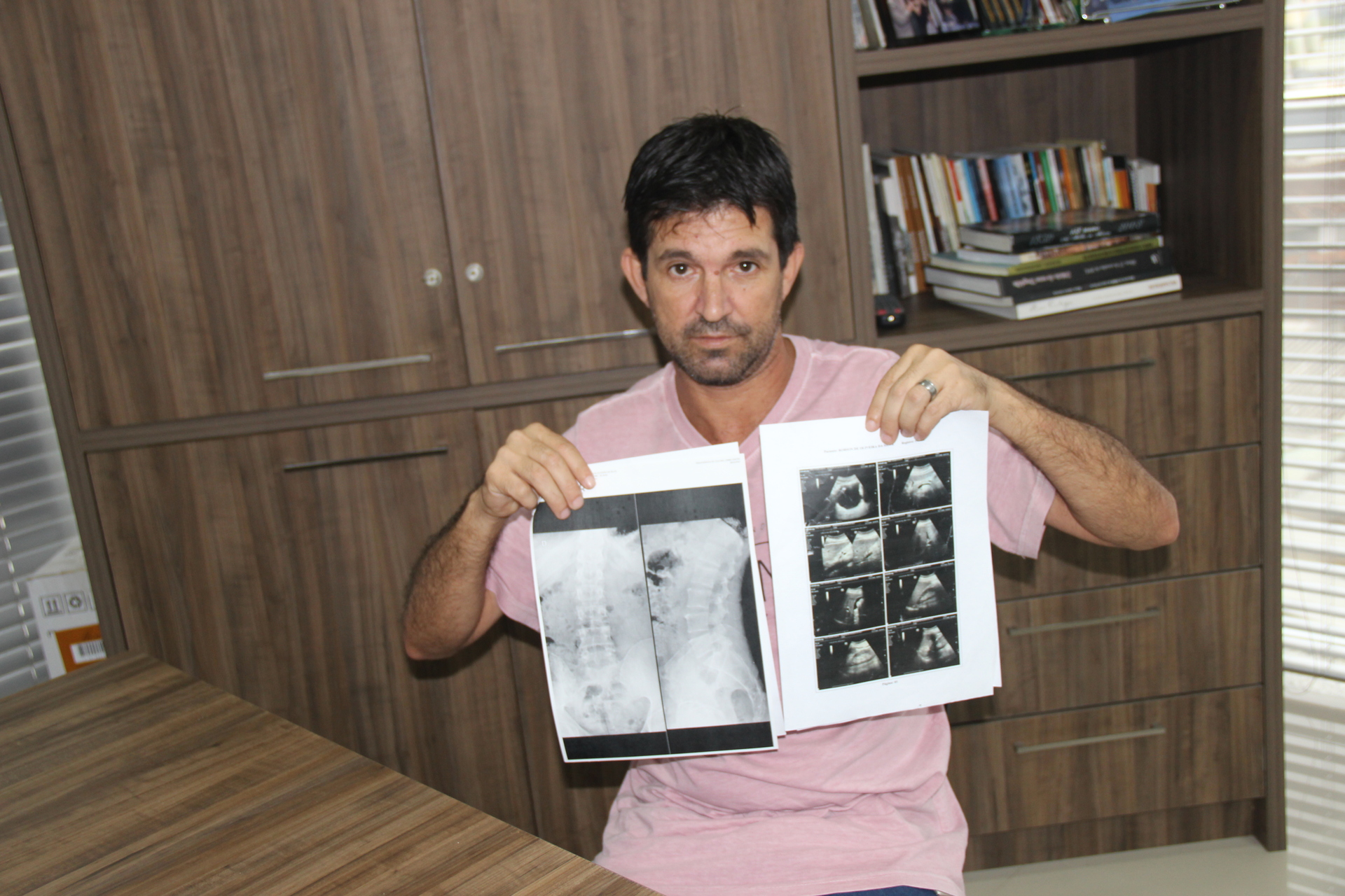 Há um ano sem beber, Robson está com gordura no fígado e sofre com fortes dores na coluna lombar por causa de um desvio, que não permite nem que ele se abaixe. Além disso, ele sente formigamentos nas mãos e nas pernas.