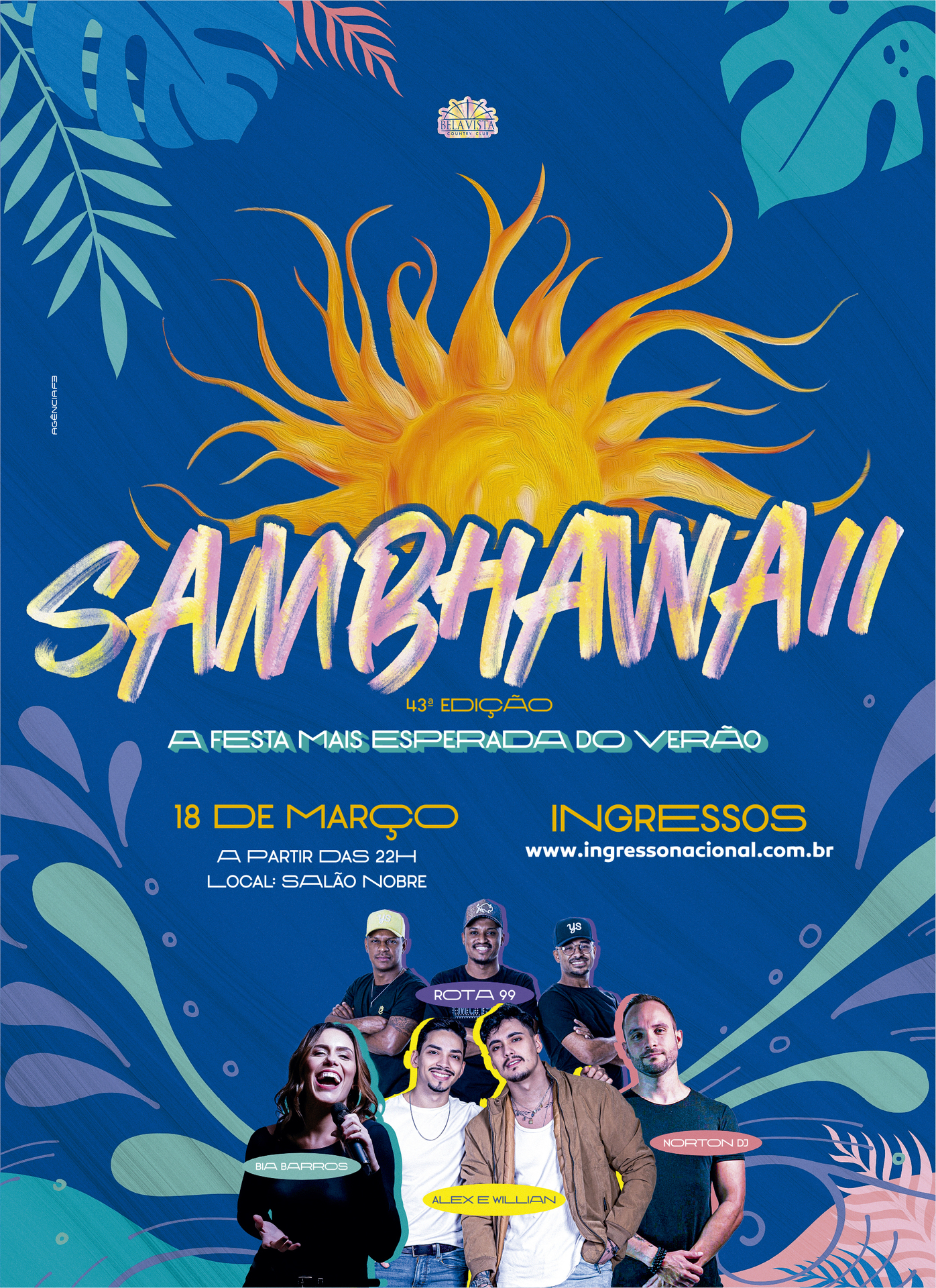 Para quem estava com saudade do mais antigo e tradicional baile do Havaí da região, chegou a hora de separar o look e se preparar para curtir, porque o Sambhawaii, realizado pelo Bela Vista Country Club, que não acontecia desde 2019 por causa da pandemia de Covid-19, está de volta e chega a sua 43ª edição. A festa acontece no sábado, dia 18 de março, para sócios e não sócios do clube.