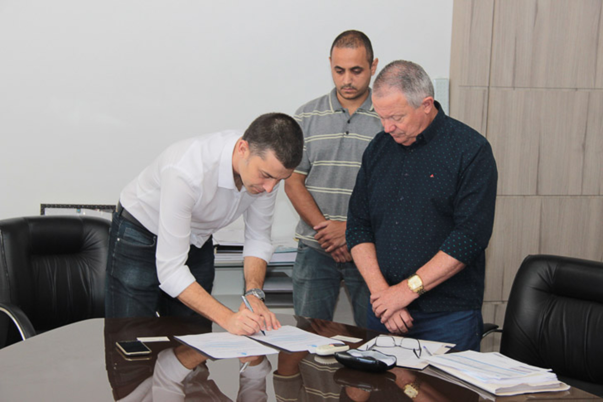 A cerimônia de assinatura aconteceu no gabinete do prefeito e foi acompanhado por moradores do bairro Bela Vista, representantes da Empreiteira Al Certa, que executará a obra, além de outras autoridades municipais.