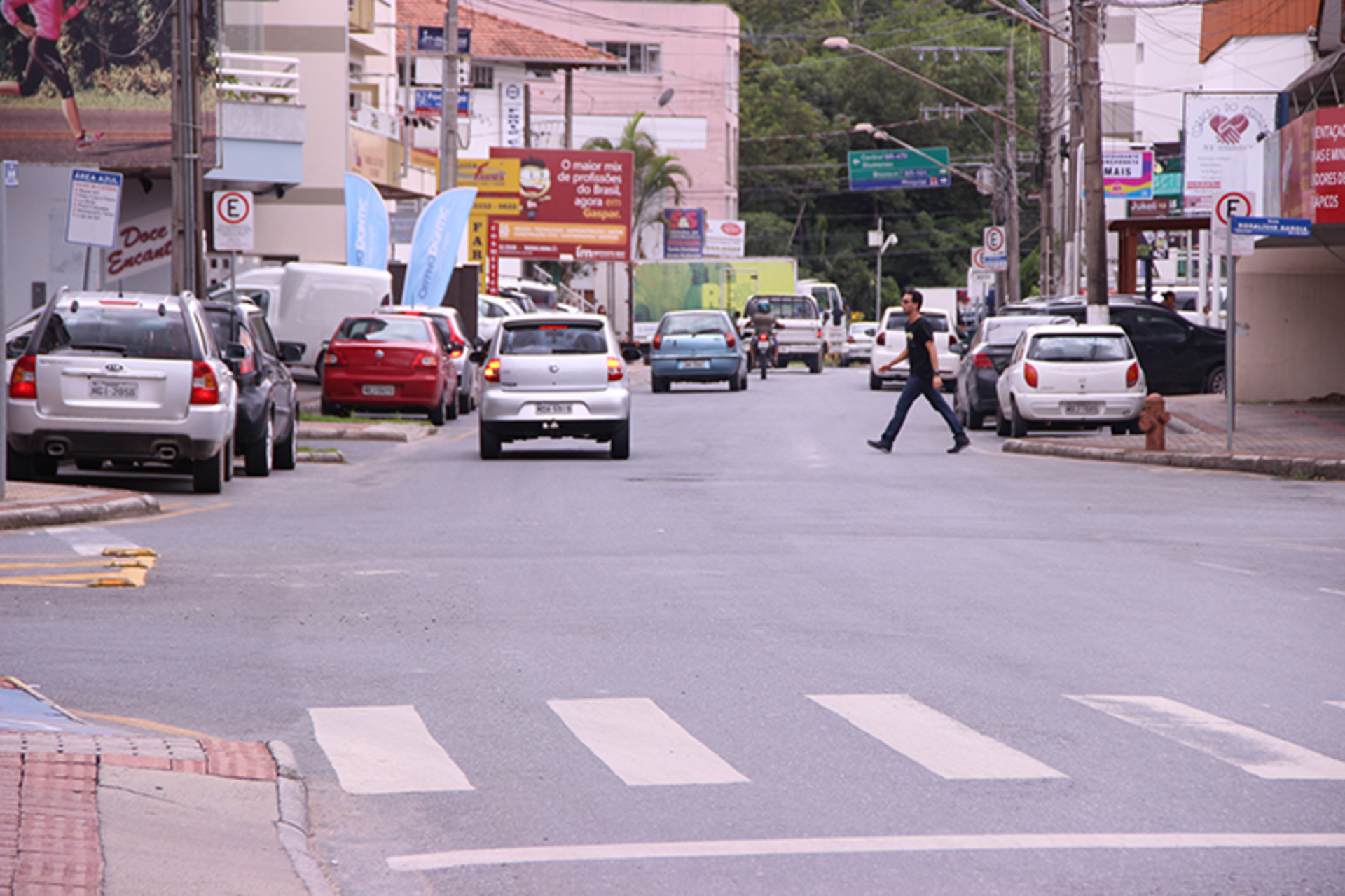 Atravessar a rua fora da faixa de segurança é considerada infração (Fotos: Kássia Dalmagro/Jornal Metas)