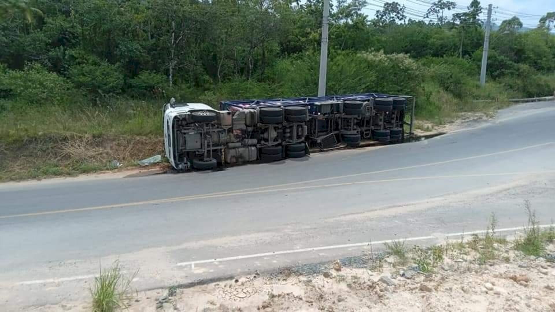 Uma carreta carregada com cilindros de gás natural tombou na tarde de terça-feira, dia 25 no quilômetro 71 da BR 470, sentido Indaial - Rodeio.