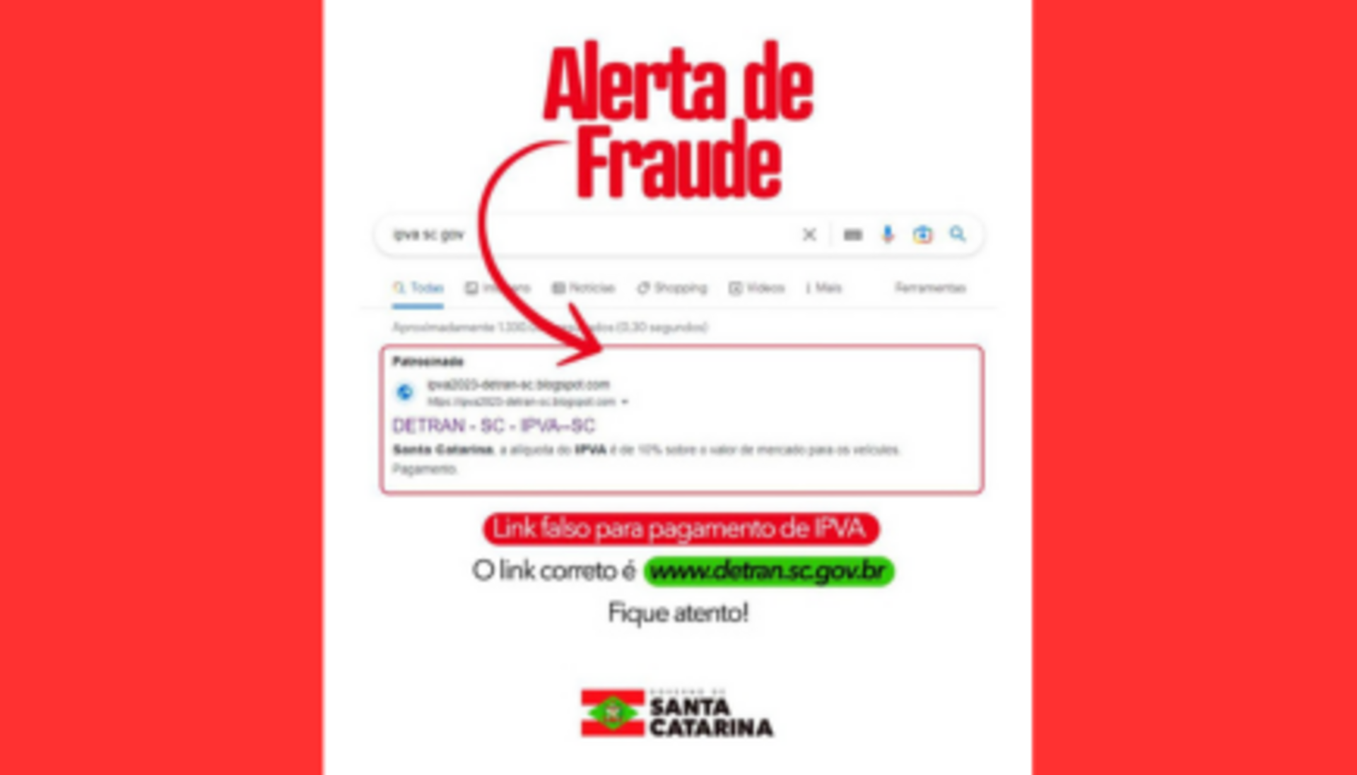 Após informações repassadas na sexta-feira (31) pela Diretoria de Tecnologia e Inovação do Departamento Estadual de Trânsito de Santa Catarina (DETRAN/SC), dando conta de um suposto site falso, criado para aplicação de golpes em contribuintes que fizessem o pagamento do IPVA/2023, a equipe do CyberGAECO, juntamente ao referido núcleo técnico do DETRAN e do Centro de Informática e Automação do Estado de Santa Catarina (CIASC), rapidamente interveio para derrubar o acesso ao falso site utilizado para a prática criminosa. Evitando assim, que os golpistas fizessem novas vítimas.