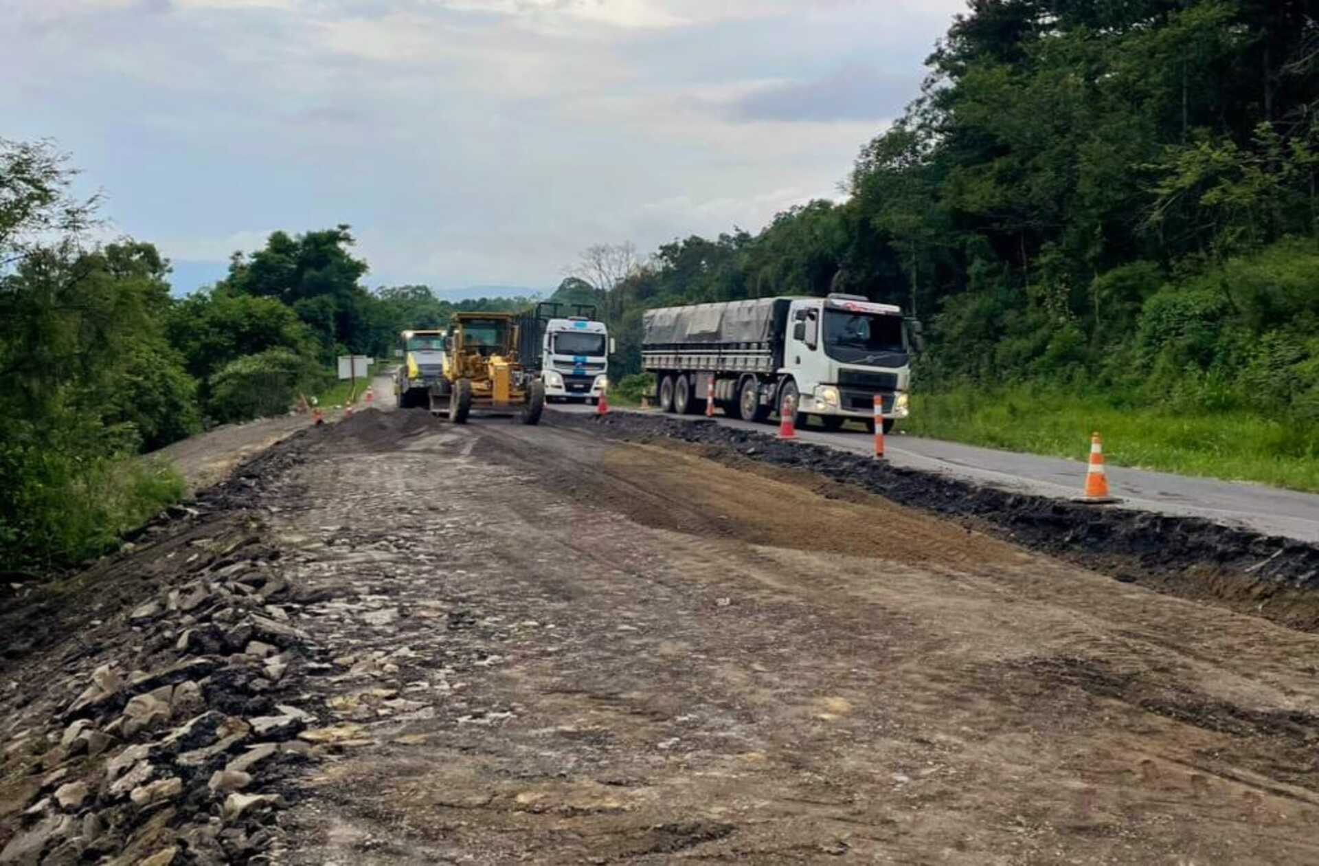 Entre os principais pontos que recebem melhorias está o km 136, em Rio do Sul, onde a chuva danificou a base da pista. No local, as equipes do DNIT realizam a construção de um desvio para liberar o fluxo nos dois sentidos. A mesma solução foi adotada no km 188, em Pouso Redondo, que vai ganhar uma pista extra após as chuvas danificarem a rodovia.