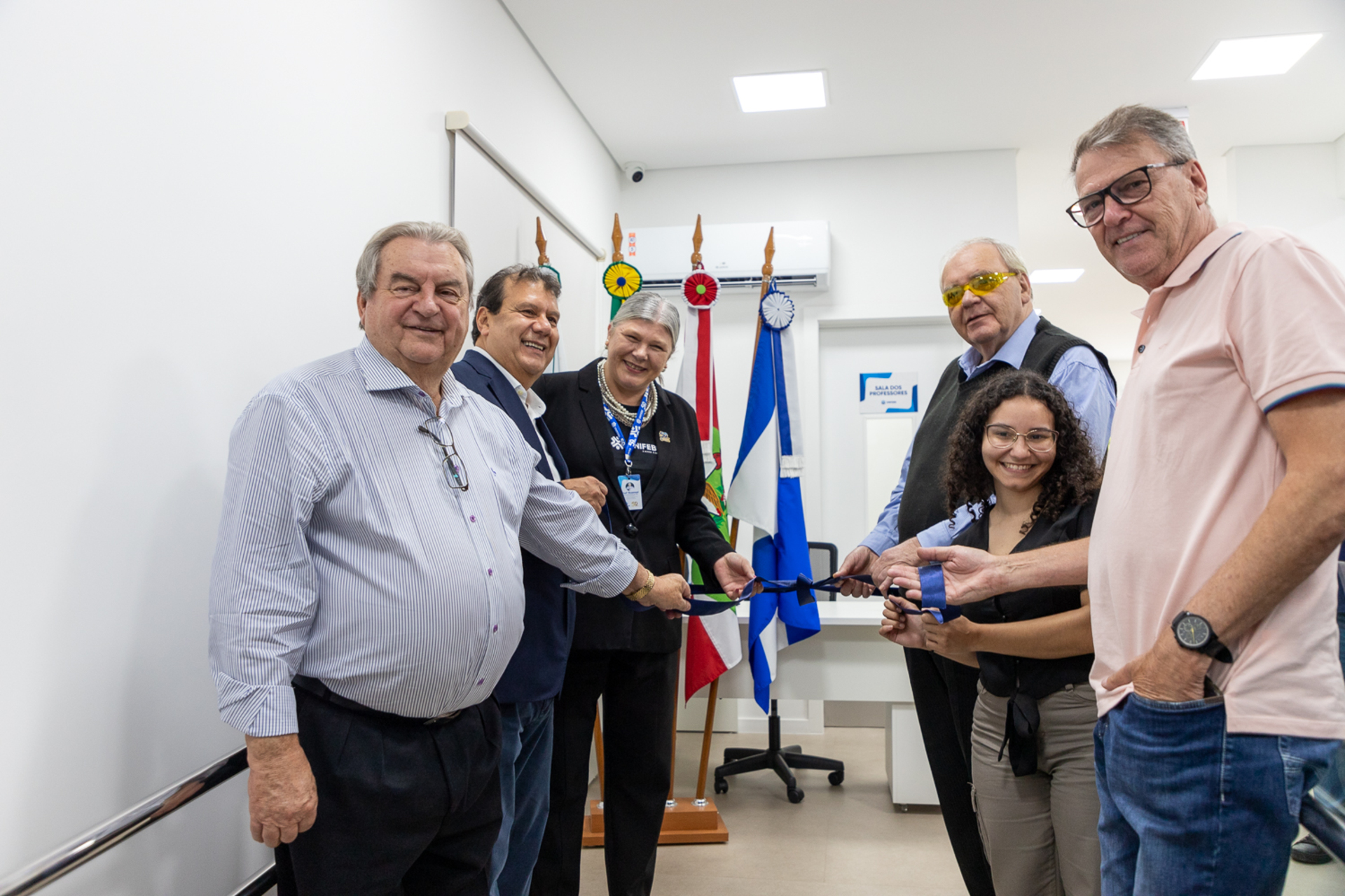 Também prestigiaram a entrega oficial do espaço, o vice-reitor da UNIFEBE, professor Sergio Rubens Fantini, a pró-reitora de Pós-Graduação, Pesquisa, Extensão e Cultura, professora Edinéia Pereira da Silva, o gestor do Hospital Azambuja, Gilberto Bastiani, o diretor técnico e médico do Hospital Azambuja, doutor Eugênio José Paiva Maciel, a Irmã Olinda Antônio Costa, o provedor do Hospital Azambuja, Ingo Fischer, o coordenador adjunto do curso de Medicina da UNIFEBE, professor Antônio de Pádua Santos Lanna, a assessora pedagógica do curso, professora Júlia Wakiuchi, a coordenadora do Internato Médico, professora Caroline Anne Lucas Leite Resner, os arquitetos responsáveis pelo projeto, Karol Diego Carminatti e Gabriela Ebele Schaefer, a engenheira projetista, Angélica Cristina de Souza, além dos engenheiros da Dimensional Engenharia, empresa responsável pela execução da obra, Emerson Azevedo, Gilmar Appel e Rafael Antunes Piva, a presidente do Diretório Central dos Estudantes – DCE UNIFEBE e acadêmica de Medicina, Camila de Almeida, e demais professores e estudantes da instituição.