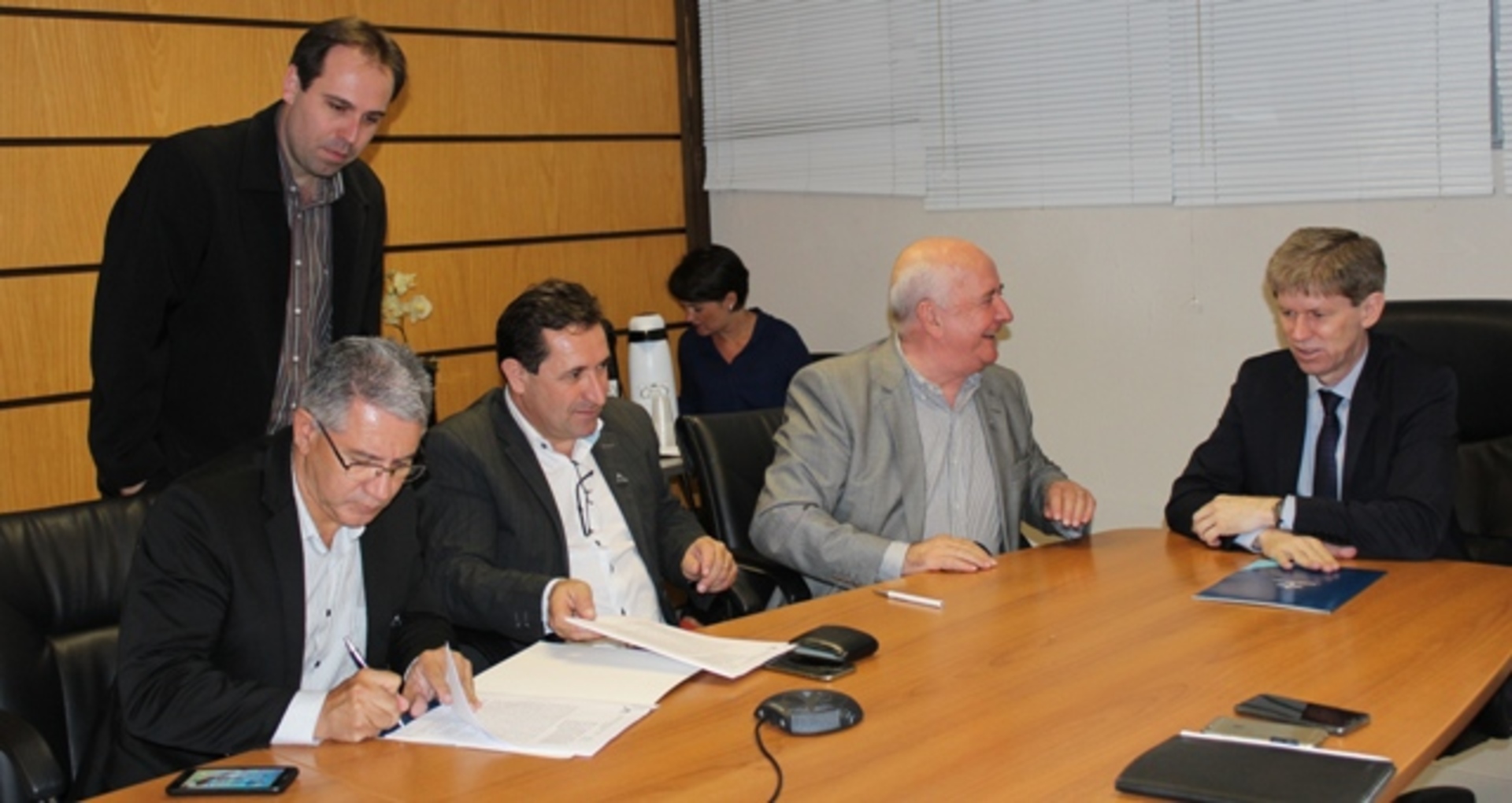 A solenidade de assinatura da parceria contou também com a presença do vice-presidente da Adjori/SC e proprietário do jornal Metas, de Gaspar, José Roberto Deschamps; do tesoureiro da Adjori/SC e proprietário do Jornal Nortesul, de Passo de Torres, Valmoci Jesus de Souza; do 1º secretário da Adjori/SC e proprietário do jornal Correio Otaciliense, de Otacílio Costa, Sergio Martins Pinheiro; do 2° secretário e proprietário do jornal Cabeço Negro, de Apiúna, Ailton Carlos Coelho, além do assessor de Marketing, Comunicação, Estratégia e Negócios da Unisul (Macen), Fabiano Ceretta; do coordenador executivo de Comunicação da Macen, Willian Máximo; e do diretor da Editora da Unisul, Laudelino José Sardá.