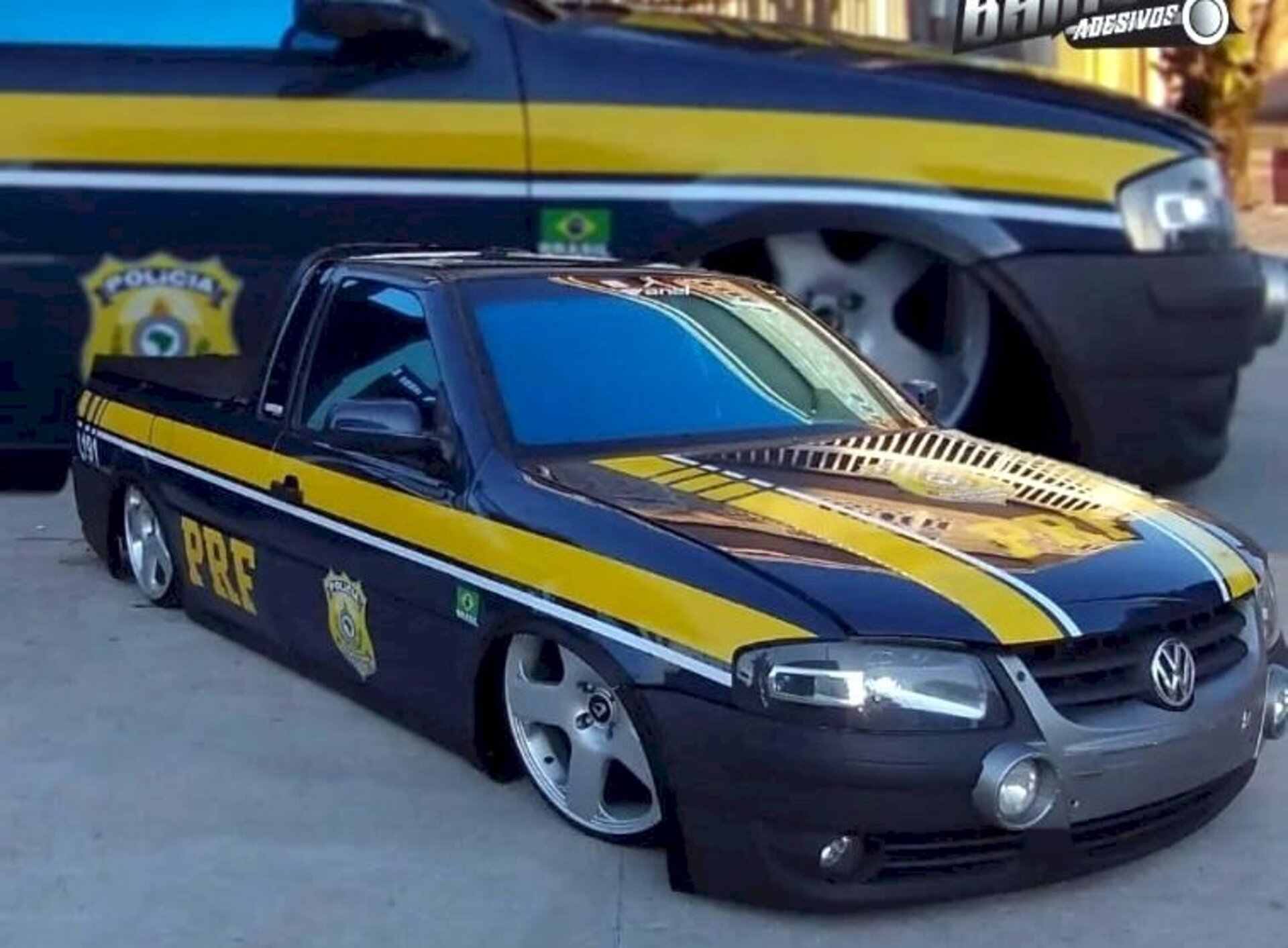 Um morador da cidade de Curitiba-PR resolveu "brincar" com a lei e só não acabou detido porque conseguiu escapar antes da chegada dos policiais. O cidadão simplesmente decidiu caracterizar uma picape VW/Saveiro, rebaixada, com cores, emblemas e símbolos da Polícia Rodoviária Federal. Não satisfeito, ele ainda exibiu imagens do veículo nas redes sociais e veio até a cidade de Balneário Camboriú participar de uma exposição de carros no último final de semana. O veículo ele trouxe sobre um caminhão e coberto com uma lona. A PRF, que já estava de olho no caso porque havia recebido várias denúncias, foi até o local da exposição, no bairro Nova Esperança, juntamente com a Guarda Municipal de Balneário Camboriú, e apreendeu o veículo.