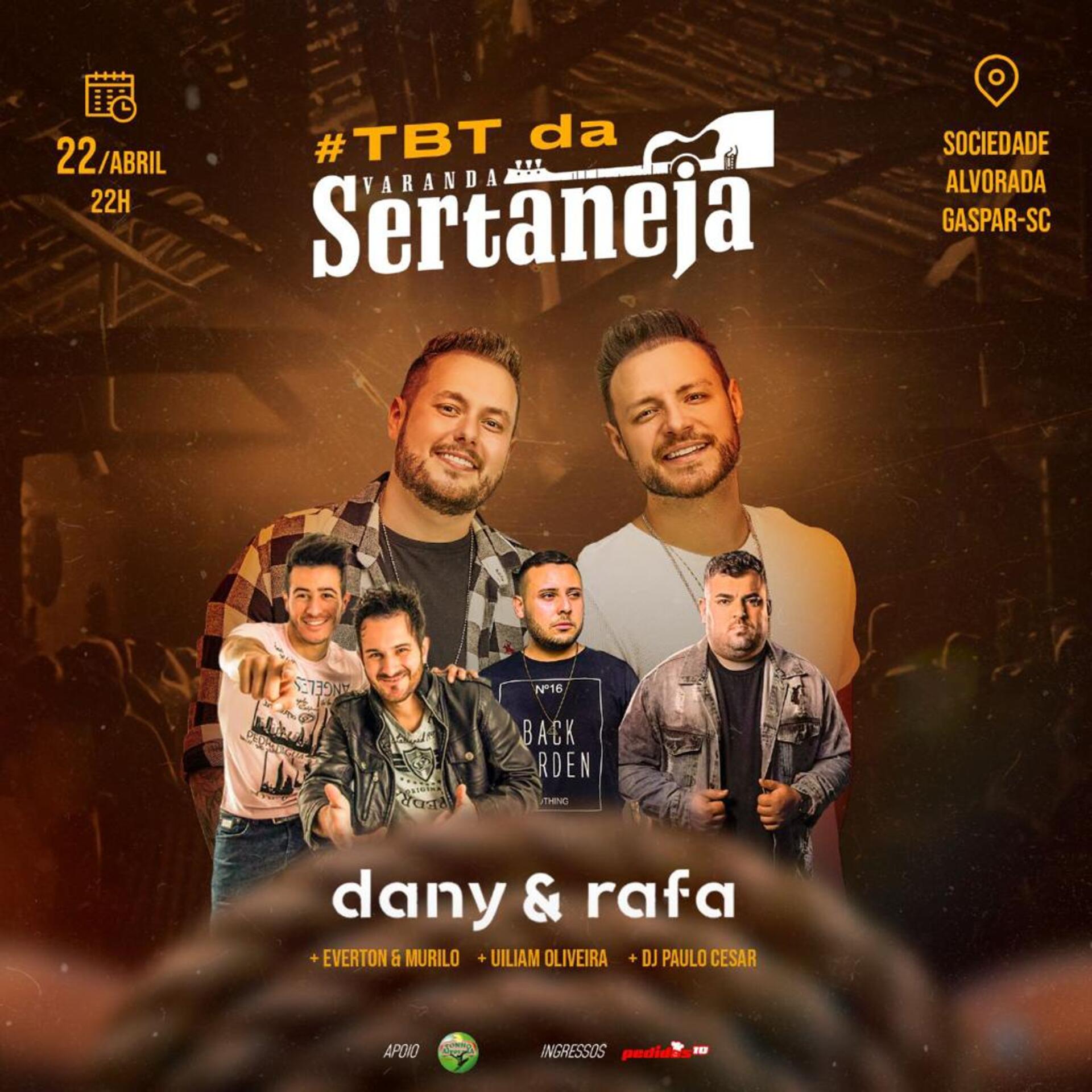 Ao receber o convite para realizar o #TBT Varanda Sertaneja 2023, a dupla Dany & Rafa topou de cara. Dany diz que retornar a Gaspar, onde tudo começou, é uma alegria gigantesca. “A cidade teve sempre um carinho muito grande pela nossa dupla, e tudo começou na época da Varanda Sertaneja, onde o Chiquinho ajudou muito a propagar o nosso trabalho, espalhar cada vez mais o Dany & Rafa; a Varanda Sertaneja faz parte da nossa história, pois também temos um grande carinho não só pelo Chiquinho e pelo evento, mas por todo o público de Gaspar. Por isso, voltar à cidade e fazer esse TBT é uma gande honra para nós, ainda mais que a previsão é de casa cheia, vai ser uma festa muito bacana e inesquecível”, finaliza o músico.