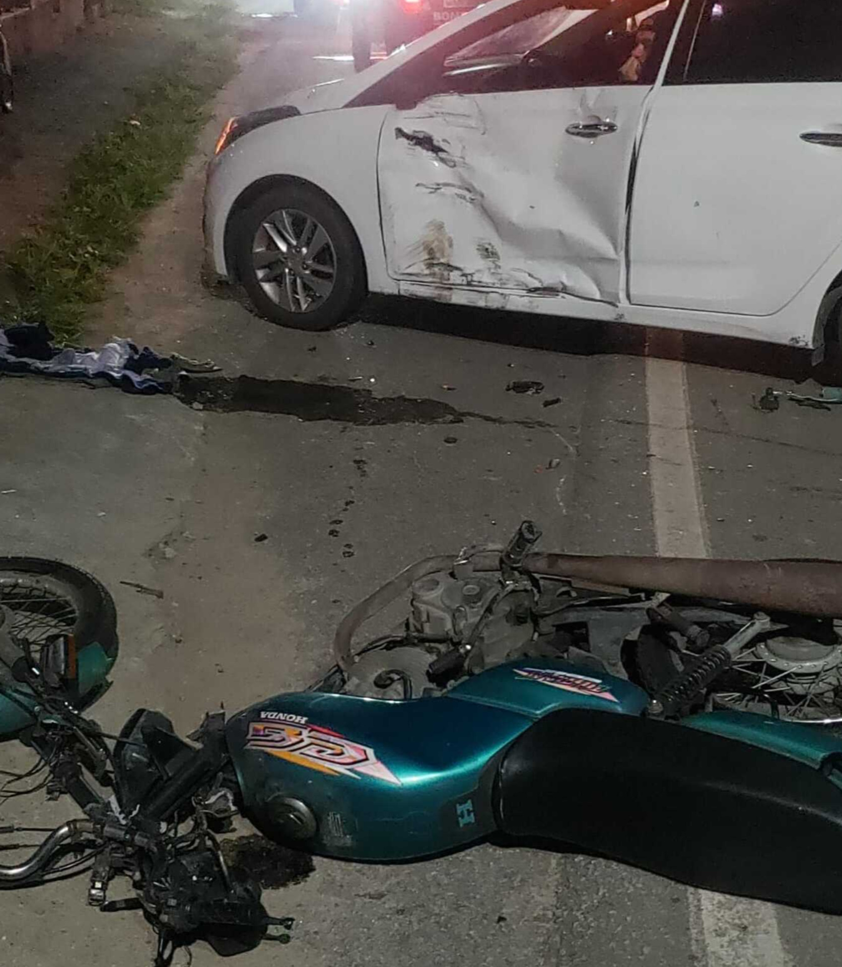 Quando a guarnição chegou ao local constatou se tratar de uma batida lateral entre carro, um Hyundai HB20, placas de Ilhota, e moto Honda CG 125 Titan, também com placas de Ilhota. O motociclista estava caído no chão e apresentava escoriações nas pernas, suspeita de fratura em arcos costais e no braço direito, bem como corte incisivo na região frontal do crânio.