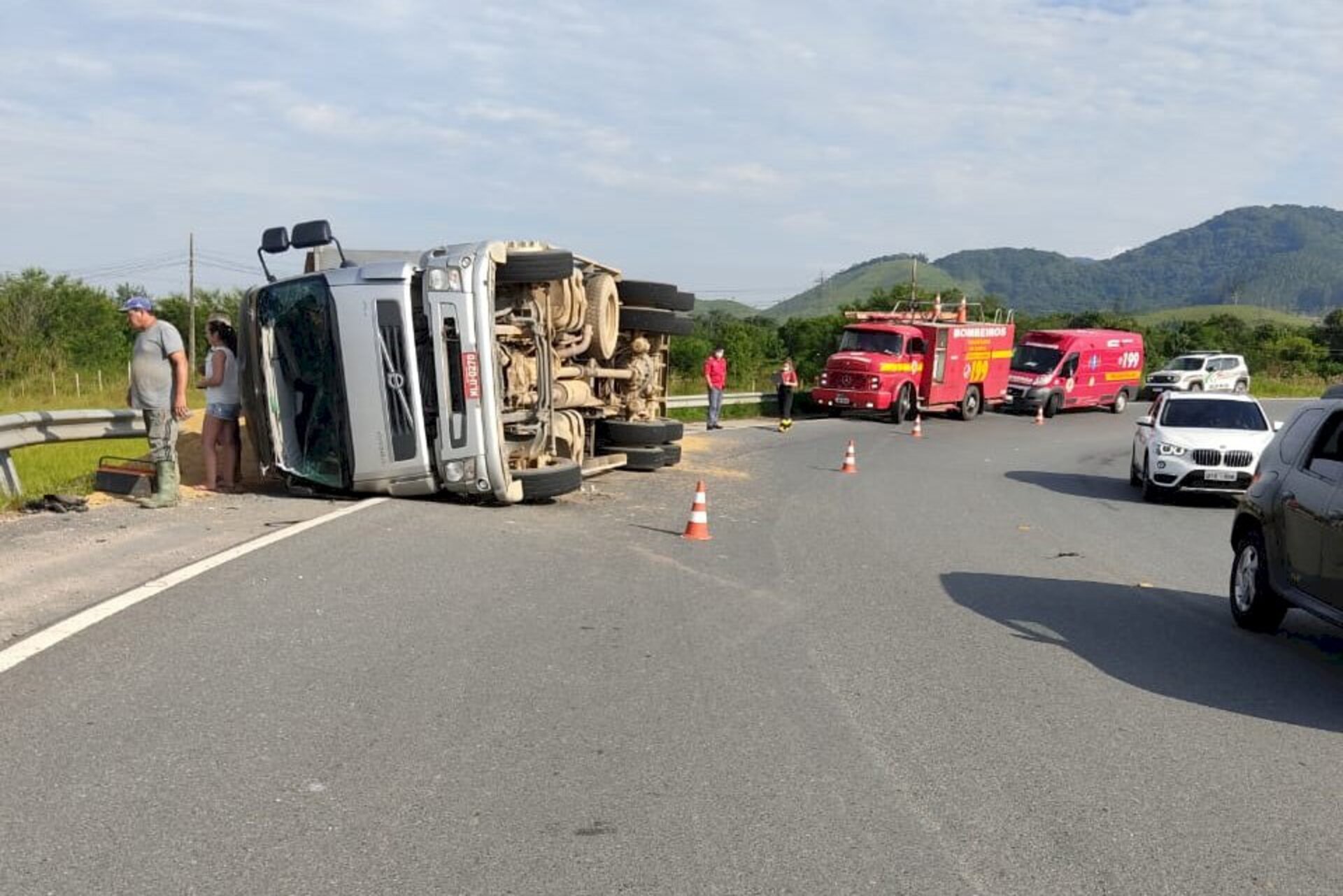 Quando a guarnição chegou ao local, o motorista do caminhão, de 45 anos, já havia sido retirado do interior do veículo por populares. O homem apresentava ferimento no crânio com hemorragia ativa e estava desorientado. Após avaliação, a vítima foi conduzida à Unidade de Pronto Atendimento (UPA) de Cordeiros, em Itajaí, para atendimento médico.
