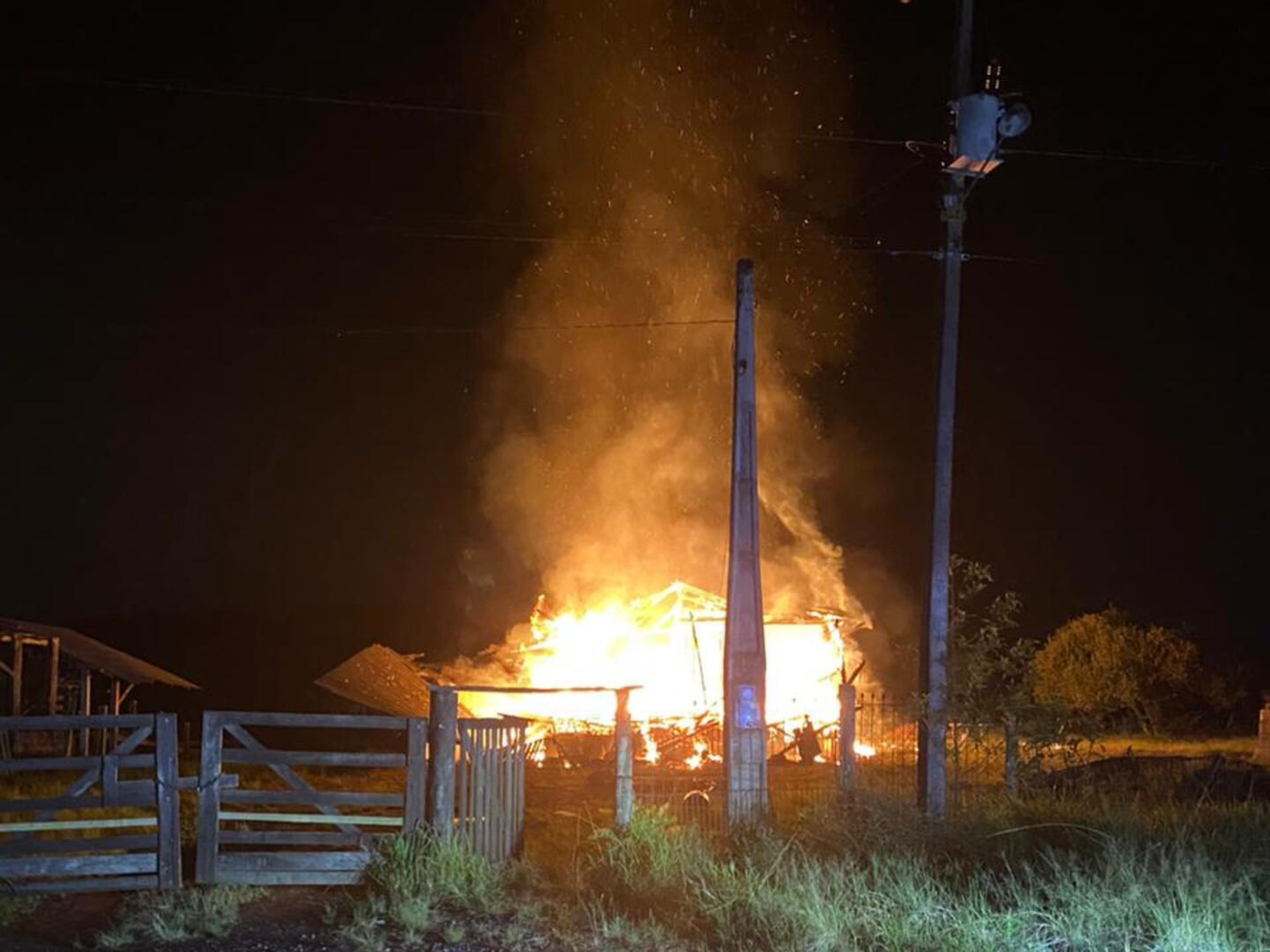 Quando a guarnição chegou ao local constatou que a casa já estava totalmente tomada pelas chamas. O morador da casa informou que ao perceber o fogo saiu de residência com seu cão, não havendo vítimas.