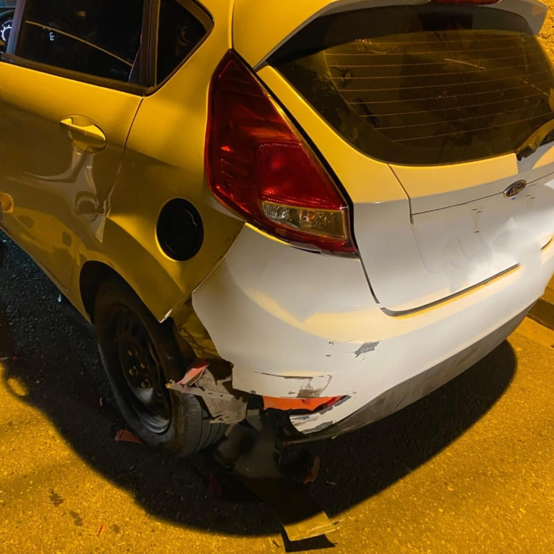 Os bombeiros relataram que a moto bateu na traseira do carro, um Ford Fiesta, que estava estacionado em via pública. O proprietário do veículo encontrava-se em sua residência no momento da colisão.