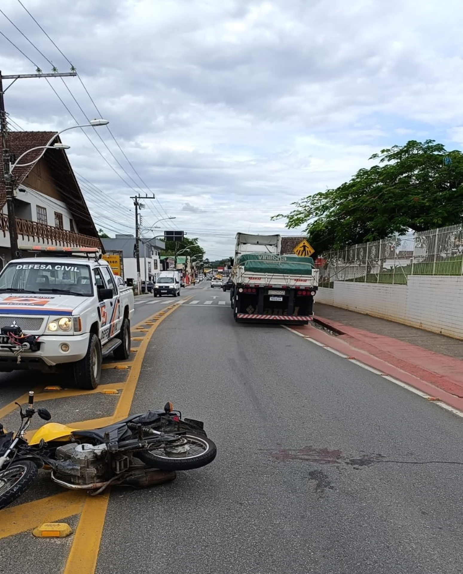O Corpo de Bombeiros Voluntários de Ilhota foi acionada na tarde desta quarta-feira, dia 17, para um acidente de trânsito entre uma moto e uma carreta em frente a Igreja Matriz do Centro de Ilhota na Rua 21 de junho.
