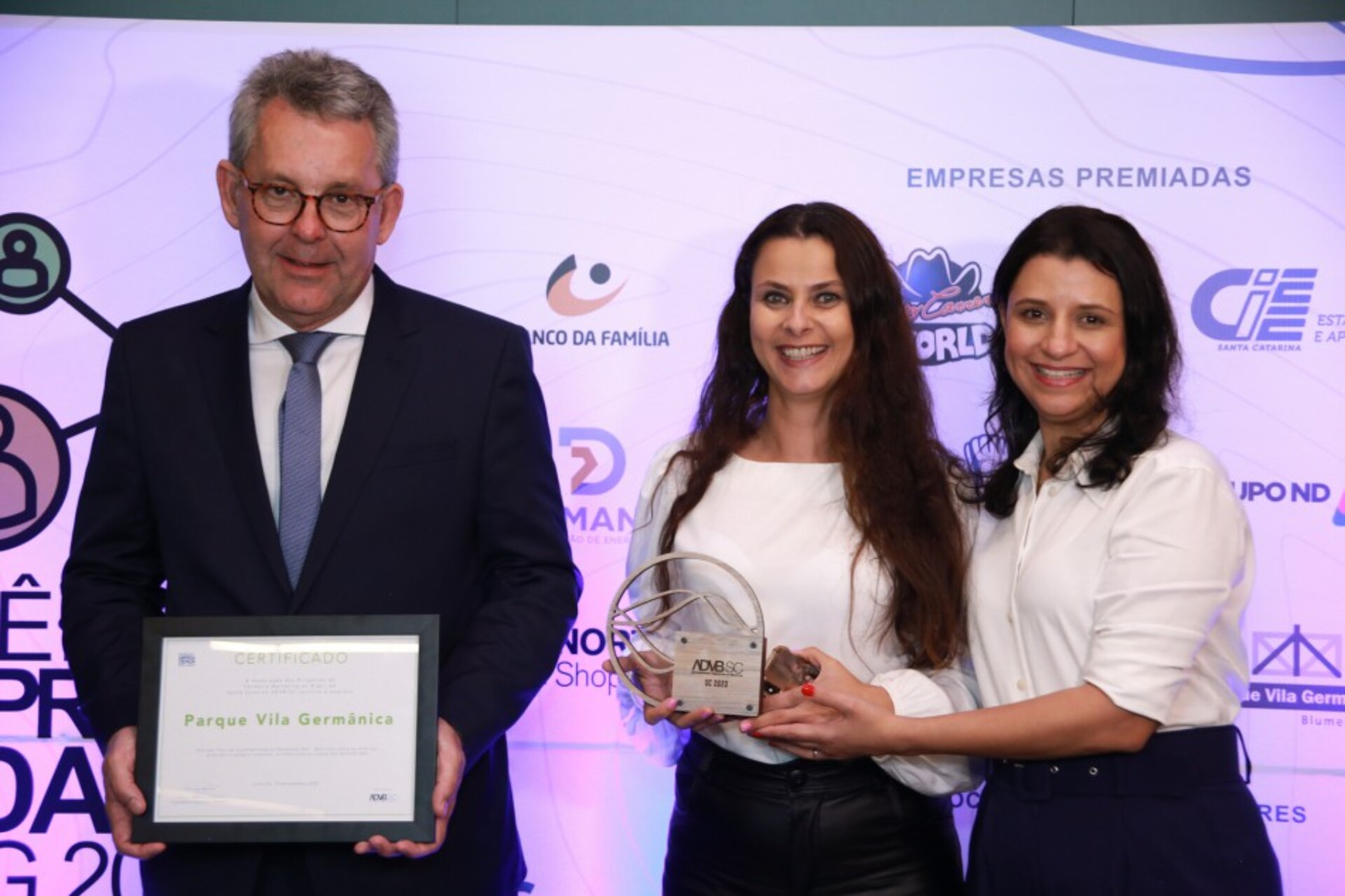 A Prefeitura de Blumenau, por meio do Parque Vila Germânica e Oktoberfest Blumenau, conquistou o Prêmio ESG ADVB/SC 2023 na categoria Ambiental com o case “Plano de Sustentabilidade da Oktoberfest 2022 – maior festa alemã das Américas”. Os resultados foram divulgados nesta terça-feira, dia 19, pela Associação dos Dirigentes de Vendas e Marketing de Santa Catarina (ADVB/SC), em solenidade no Ágora Tech Park, em Joinville. A premiação está na 24ª edição e reconhece anualmente organizações catarinenses que se destacam pela atuação responsável nos pilares de responsabilidade social, ambiental e governança corporativa, conhecidos como ESG (Environmental, Social, and Governance). O prefeito Mário Hildebrandt aponta que isso significa o reconhecimento do início de um projeto audacioso implantado na festa. “Quando iniciamos tínhamos a certeza que estávamos criando algo grande e que seria uma semente fundamental plantada no caminho das ações de sustentabilidade nos grandes eventos”, diz.O Prêmio Empresa Cidadã ESG é promovido pela ADVB/SC desde 1999. Neste ano, foram inscritos 43 cases e 13 deles foram premiados em três categorias distintas – ambiental, social/cultural e governança. A avaliação dos cases inscritos no Prêmio Empresa Cidadã ESG é conduzida pelo Movimento Catarinense de Excelência (MCE): os cases são analisados com base em uma média de pontos, seguindo o modelo de avaliação PDCL (Plan, Do, Check e Learning), onde cada questão é julgada de acordo com a aderência aos temas de ESG, culminando na premiação das organizações que se destacam nesses pilares fundamentais.
