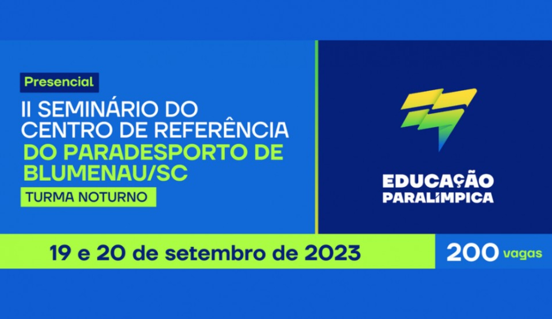 O II Seminário do Paradesporto de Blumenau está com inscrições abertas para uma programação completa de palestras entre os dias 19 e 20 de setembro. O seminário é promovido pelo Comitê Paralímpico Brasileiro e pelas secretarias municipais de Educação (Semed) e de Inclusão da Pessoa com Deficiência e Paradesporto (Seidep), por meio do Programa Paradesporto de Blumenau em parceria com a Associação de Paradesporto de Blumenau (Apesblu) e a Universidade Regional de Blumenau (Furb), com os cursos da área da saúde.