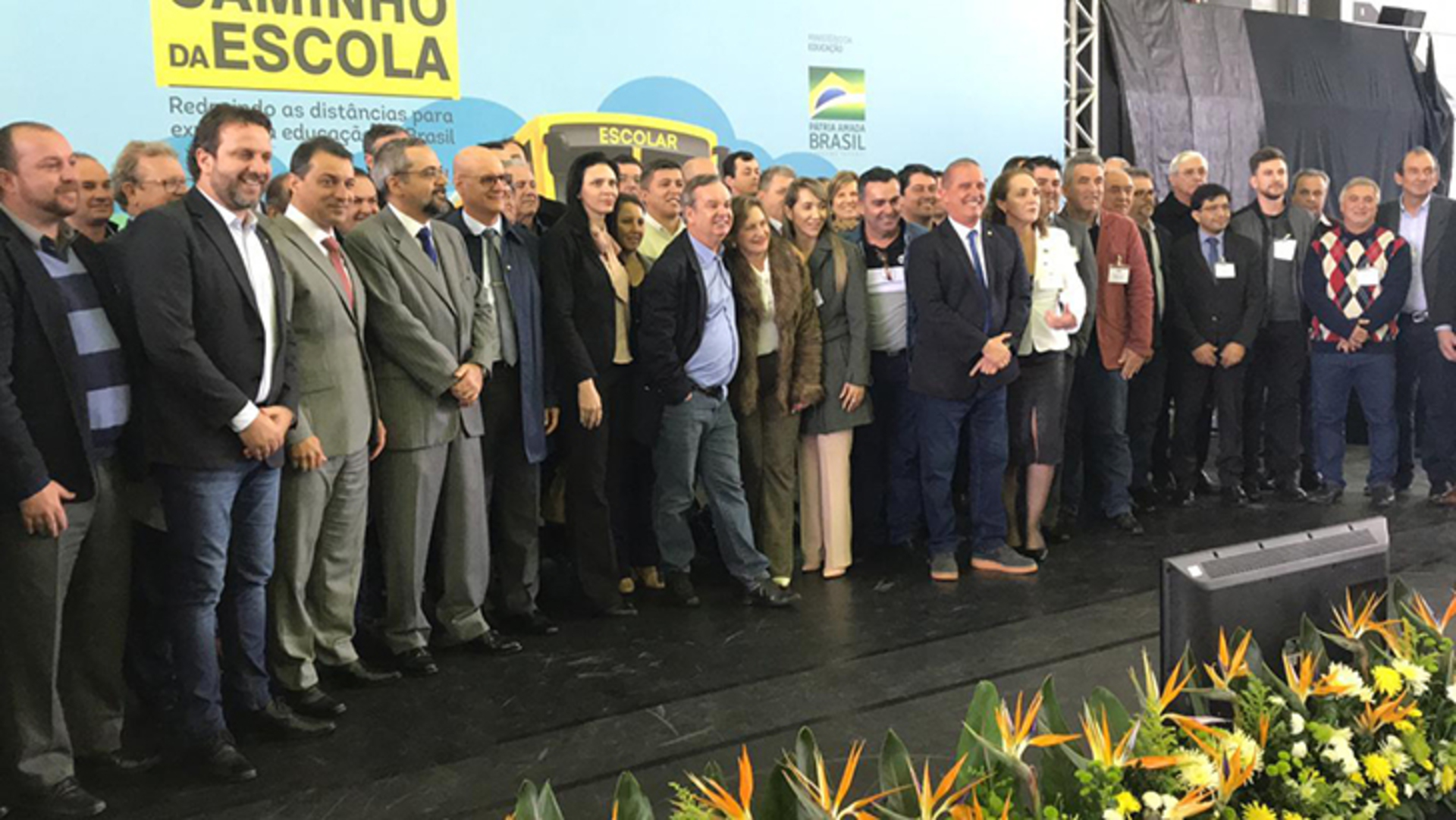 O Ministério da Educação (MEC) entregou na manhã de segunda-feira (15), na Base Aérea da Capital, com a presença do ministro da Casa Civil, Onyx Lorenzoni, e do Ministro da Educação, Abraham Weintraub, do Governador Carlos Moisés, deputados federais Rogério Peninha Mendonça, Geovánia de Sá, Daniel Freitas, Celso Maldaner, Hélio Costa e Coronel Armando, prefeitos e demais autoridades, 74 novos micro-ônibus escolares ao Governo do Estado, que repassará os veículos a 64 municípios catarinenses. Outros 42 já estão em fase de emplacamento e serão entregues até 31 de agosto, beneficiando 93 cidades ao todo. Os 116 veículos representam uma renovação de 46% da frota. O deputado Jerry Comper, presidente da comissão de assuntos municipais da ALESC, enfatizou a importância de investimentos na educação para os pequenos municípios, a exemplo dos que foram beneficiados no Médio Vale, Apiúna, Dona Emma, Gaspar e Rodeio. E no Alto Vale, Chapadão do Lageado, Ituporanga, Pouso Redondo, Presidente Nereu, Rio do Campo, Salete, Santa Terezinha, Vidal Ramos e Witmarsum.