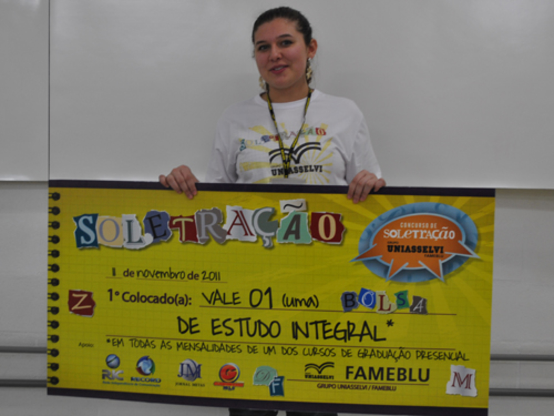 “Eu tinha a esperança de conseguir um bom resultado na competição, mas a conquista do 1º lugar no concurso foi uma surpresa para mim”, diz Natália. Como recompensa, a estudante do terceiro ano do ensino médio da Escola Frei Godofredo, no bairro Sete de Setembro, ganhou um curso de graduação pago totalmente pela Uniasselvi/Fameblu. “Vou aproveitar esta oportunidade e vou cursar Direito”, disse. A conquista de Natália garantiu ainda, ao diretor e professor coordenador da escola, uma bolsa integral para um curso de pós-graduação.