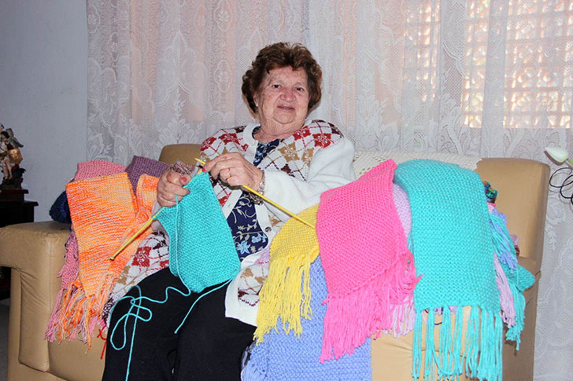 Irene Demmer começou a fazer cachecol para os idosos há três anos (Fotos: Kássia Dalmagro/Jornal Metas)