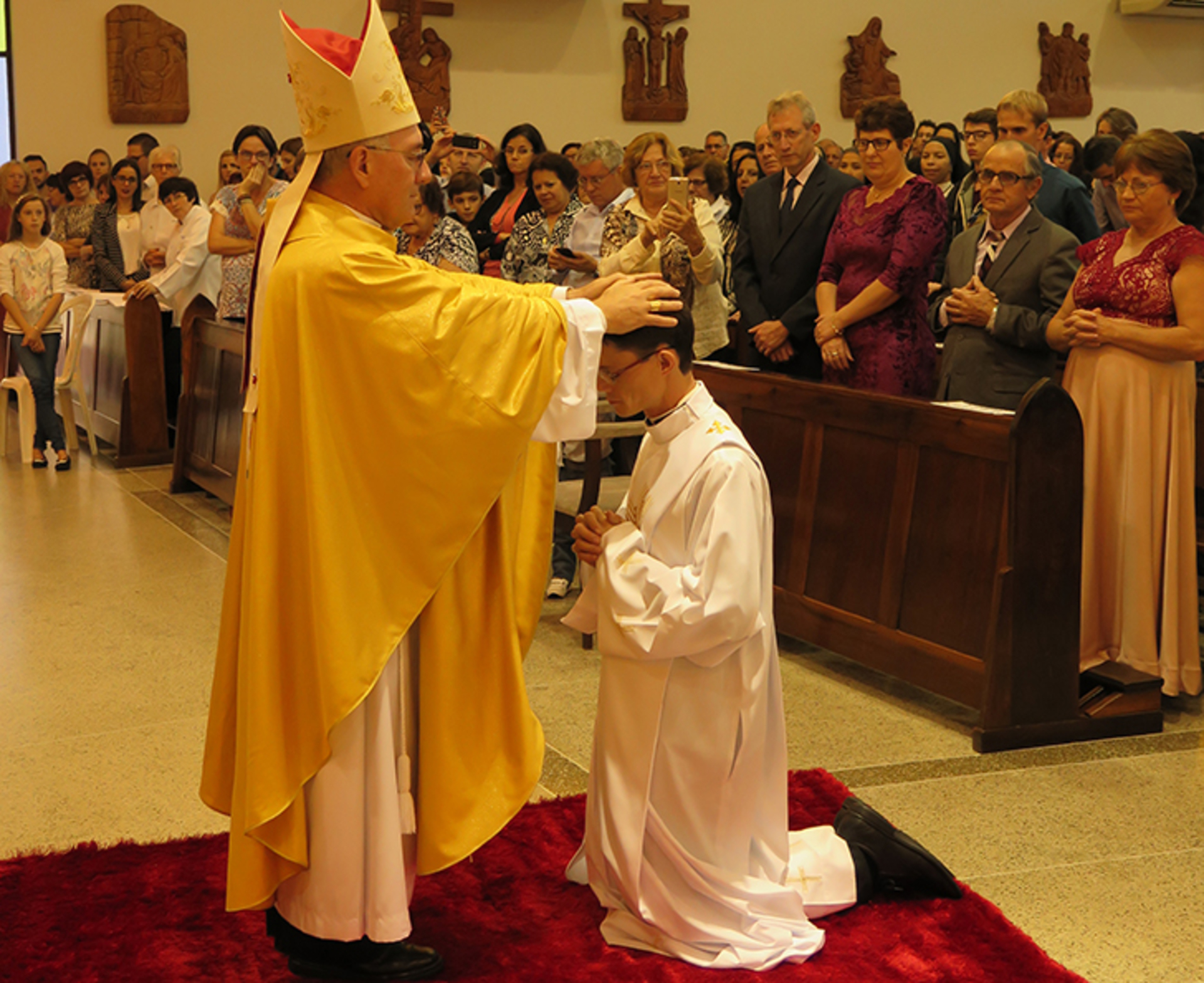 A Igreja da Paróquia Santa Terezinha, em Timbó, ficou lotada na manhã de sábado (27) quando foi realizada a ordenação presbiteral do diácono Fernando Steffens, que há pouco mais de um ano atua na Paróquia Nossa Senhora Imaculada Conceição, no bairro Bela Vista, em Gaspar. A celebração eucarística foi presidida pelo bispo da diocese de Blumenau, Dom Rafael Biernaski, e foi um momento de muita emoção para o novo padre e para os fiéis católicos que acompanharam a cerimônia religiosa.