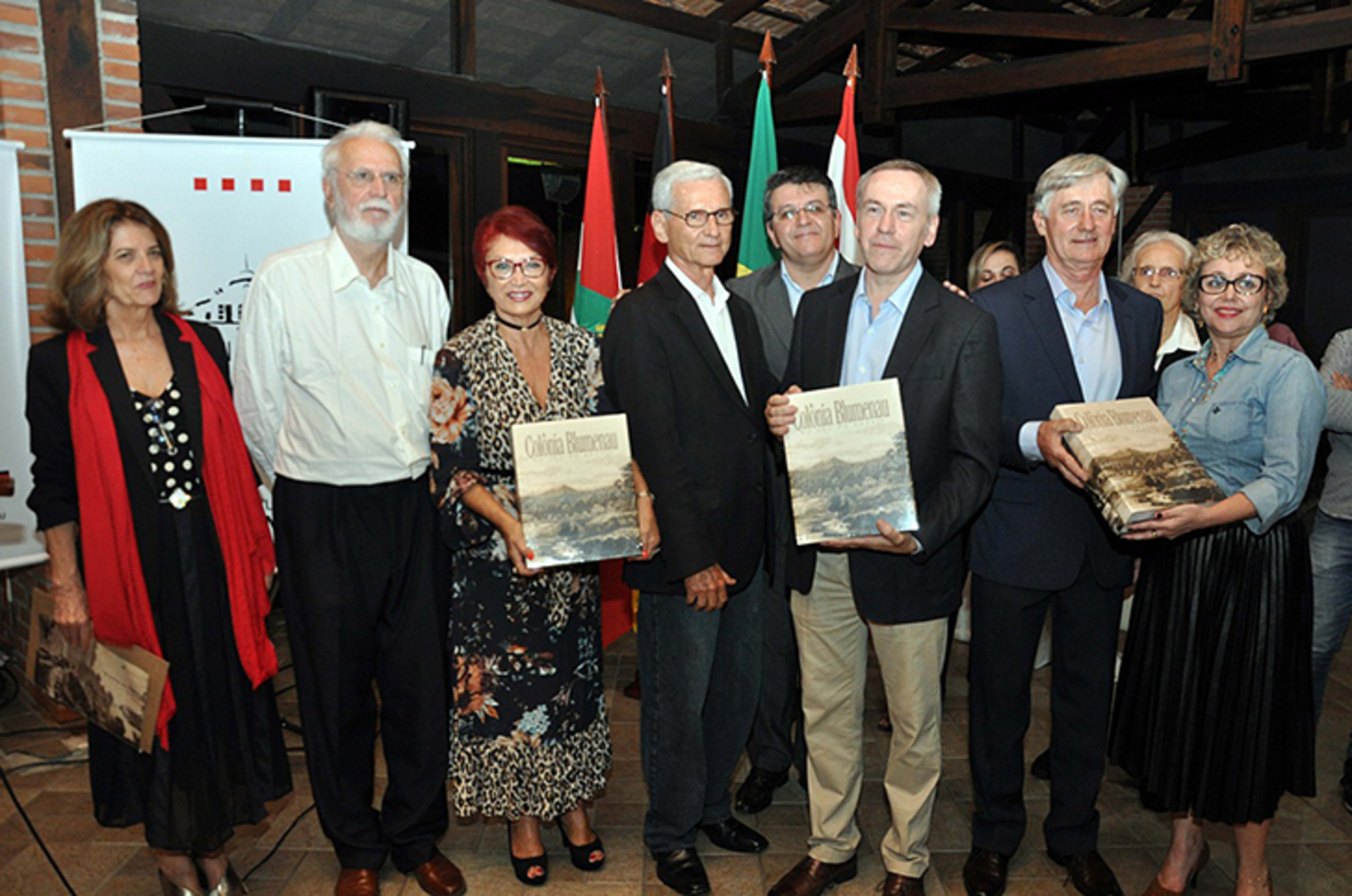 Depois de cerca de 20 anos de sonhos, tornou-se realidade o livro-álbum "Colônia Blumenau no Sul do Brasil", lançado na última quinta-feira, no Mausoléu Dr: Blumenau. O resgate histórico é resultado de muitos estudos e pesquisas nos últimos anos, com algumas imagens inéditas, nunca vistas antes em outras obras sobre a cidade. "Morei um período na cidade, quando estudei no Colégio Santo Antônio, e apaixonei-me pela história e decidi que um dia faria esse resgate. Para isso, contei com a ajuda de muitas pessoas. Entre elas, Marcondes Marchetti e Kilian Kadletz", declarou, durante a cerimônia de lançamento, Gilberto Schmidt-Gerlach, organizador do projeto. Cerca de 250 pessoas participaram do coquetel de lançamento, entre amigos, lideranças culturais, políticas e artistas.