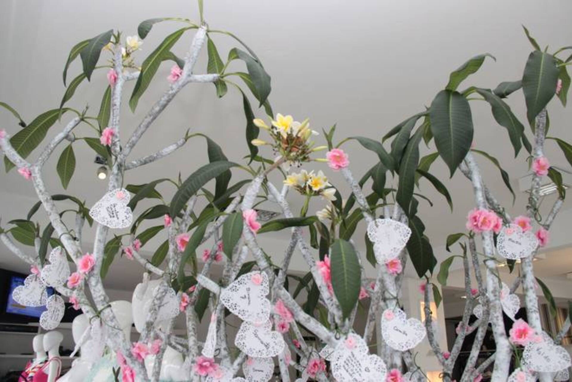 Conforme explica Néia, ela pegou um galho seco de uma árvore plantada no terreno de uma casa próxima à loja e ele foi colocado em um vaso, apenas com pedra brita. Os galhos foram pintados com tinta branca e decorados com flores artificiais de cerejeira - símbolo da renovação, amor, felicidade e esperança. Para montar a árvore, Neía contou com a ajuda do marido, Giovane Pereira, e da amiga Carla Floriani. "Nossa ideia era deixar a árvore dentro da loja para que nossas clientes pendurassem nos galhos bilhetes com os nomes de amigos ou familiares que estavam com problemas de saúde", afirma. Uma semana depois a árvore estava repleta de bilhetinhos e, após 15 dias, o "milagre" aconteceu.