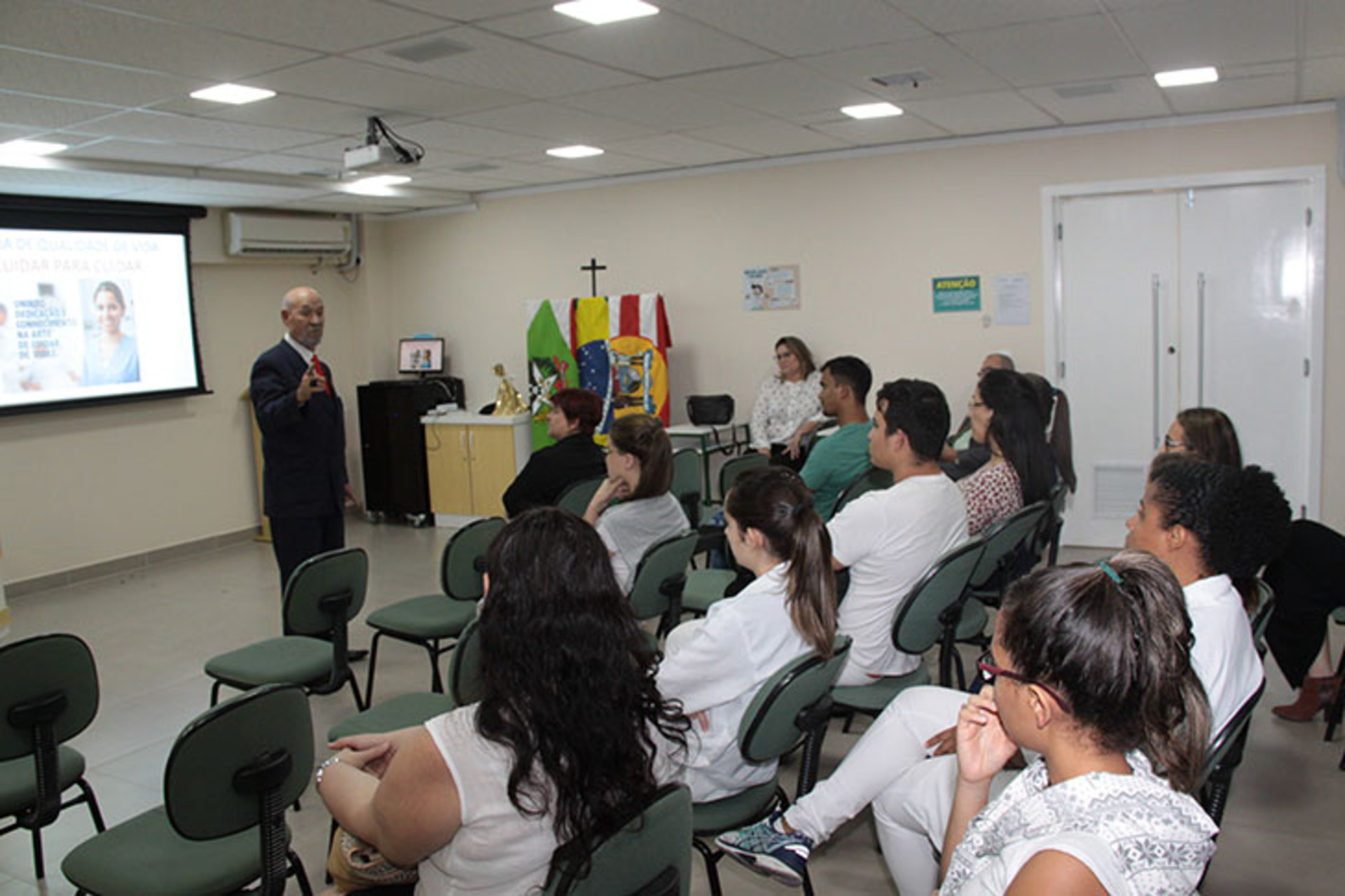 Qualidade de vida, Motivação e Desenvolvimento Humano. Este foi o tema da palestra proferida pelo comunicólogo e psicólogo Juarez Moura na noite de sexta-feira (18), em Blumenau. O encontro aconteceu no Hospital Santo Antônio e encerrou as atividades da 38ª edição da Semana de Enfermagem. Segundo o palestrante, a equipe foi bem receptiva e saiu satisfeita da experiência. "Durante a minha fala, tentei motivá-los a serem profissionais ainda melhores. É preciso encarar o trabalho como uma missão e não atuar apenas pelo dinheiro", alerta.