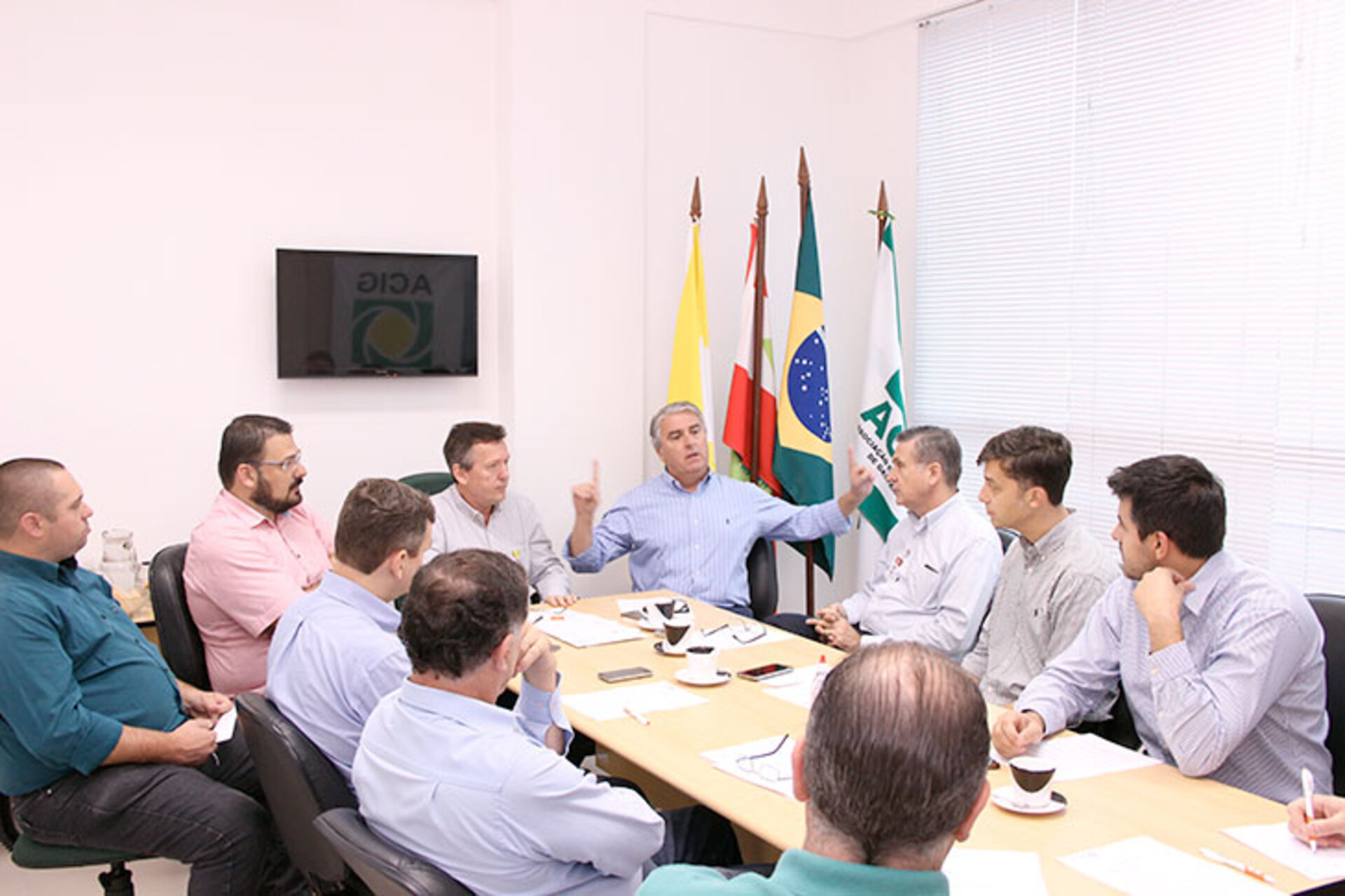 O prefeito eleito de Gaspar, Kleber Wan-Dall (PMDB), se reuniu, na manhã desta terça-feira (25), com a diretoria da Associação Empresarial de Gaspar (ACIG) para o seu primeiro encontro oficial com uma entidade de classe do município. O presidente da entidade, Nelson Küstner, reforçou o interesse da classe empresarial de Gaspar de trabalhar em parceria com o futuro governo, buscando melhorias para a cidade e focando no crescimento da cidade de Gaspar.